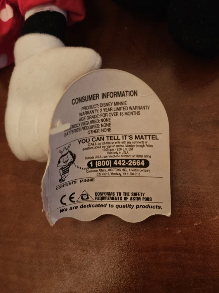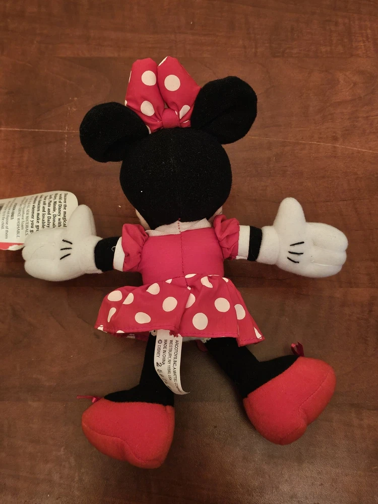 Minnie Mouse Vinyl Plush 9" Toy by Mattel Disney Arcotoys W/ Torn Tag. Condition is Used. Shipped with USPS Ground Advantage.