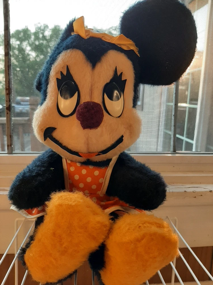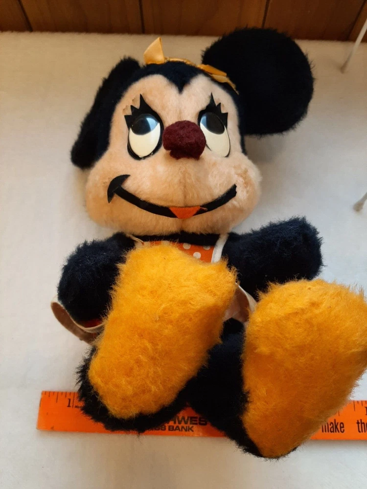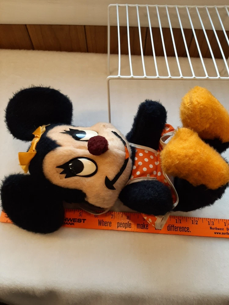 Minnie Mouse Walt Disney Characters Plush By California Stuffed Toys Vintage In good pre-owned condition may show signs of wear from use/handling/storage/display. Please view all pics for condition/details/flaws/issues. SOLD AS IS There is/maybe marks/spots/dirt/debris please see photos 1-18, there is/maybe paint loss/sticker loss please see photos 1-18, there is lite discoloration please see photos 1-18, there are surface scratches to item please see photos 1-18, please see all photos for condition/issues/details.