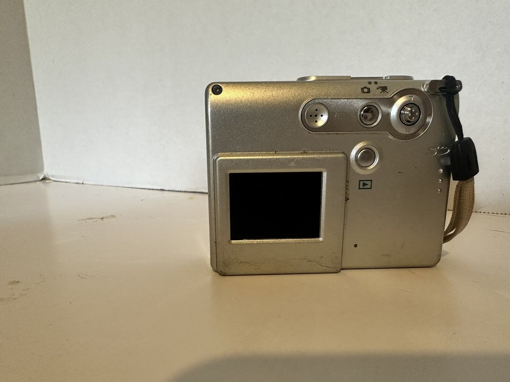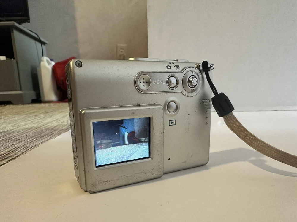 Works and has new batteries. It comes on but I can’t seem to get it to turn off with the off button. All zoom functions and the view finder work . Comes with a usb card. I have no idea what’s on it