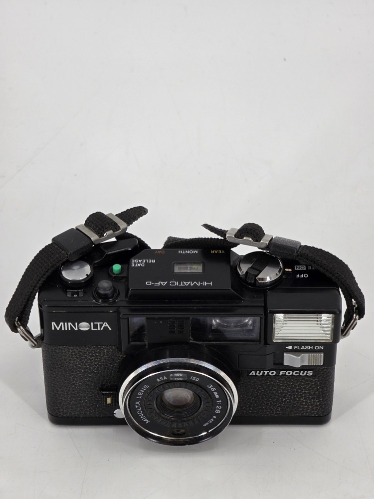 Color: Black California Prop 65 Warning: N/A Manufacturer Warranty: N/A Item Height: N/A MPN: N/A Item Weight: N/A Item Width: N/A Item Length: N/A Country of Origin: Japan Features: Auto Exposure, Built-in Flash, Timer Focus Type: Auto Brand: Minolta Model: Minolta Hi-matic AF-D Type: Point & Shoot Series: Minolta Hi-matic Format: 35 mm Year Manufactured: N/A
