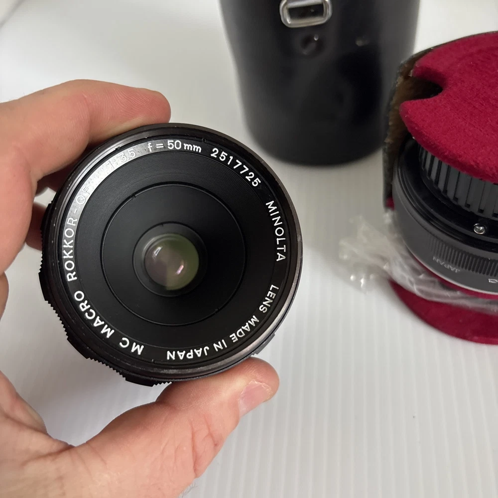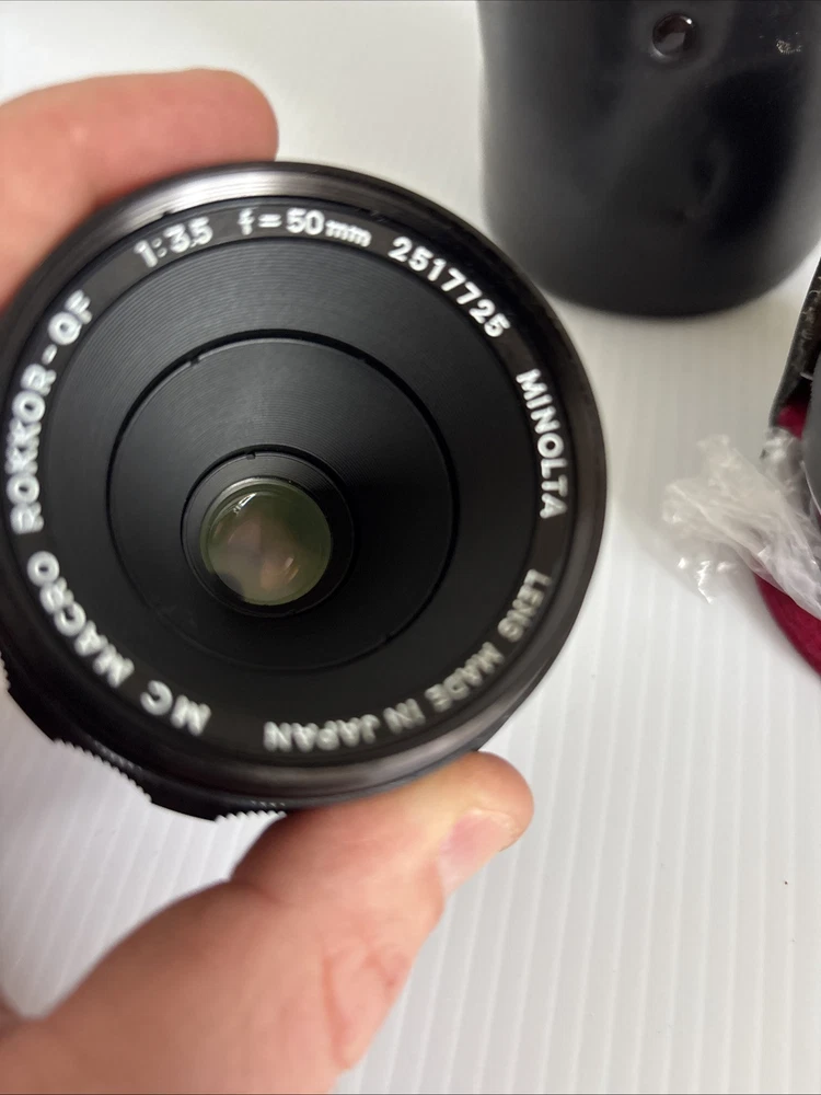 The Minolta MC 50mm f/3.5 Macro Rokkor-X Lens comes with a 1:1-1:2 extension tube, case, and caps. The extension tube is excellent. I have tested this lens on a Minolta x-700 and it looks great!