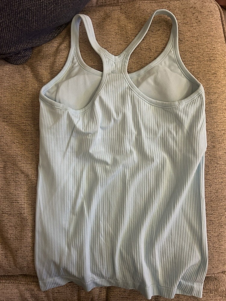 The Mint Green Lululemon Tank Top is a stylish and functional activewear top for women. Made from a blend of nylon fabric, this sleeveless tank features a scoop neckline, racerback strap, and a pullover closure for easy wear. The athletic fit and stretch fabric make it perfect for yoga and other active occasions, while the solid green color adds a pop of fun to your summer and spring wardrobe. Easy to care for with machine washable instructions, this tank from the popular brand Lululemon is a must-have for any active woman's collection.