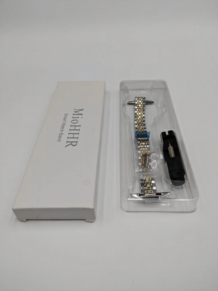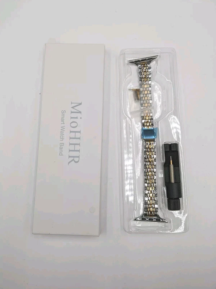 MioHHR Stainless Steel Watch Band For Apple Watch Goldtone Silvertone 42mm 44mm. Shipped with USPS Ground Advantage.