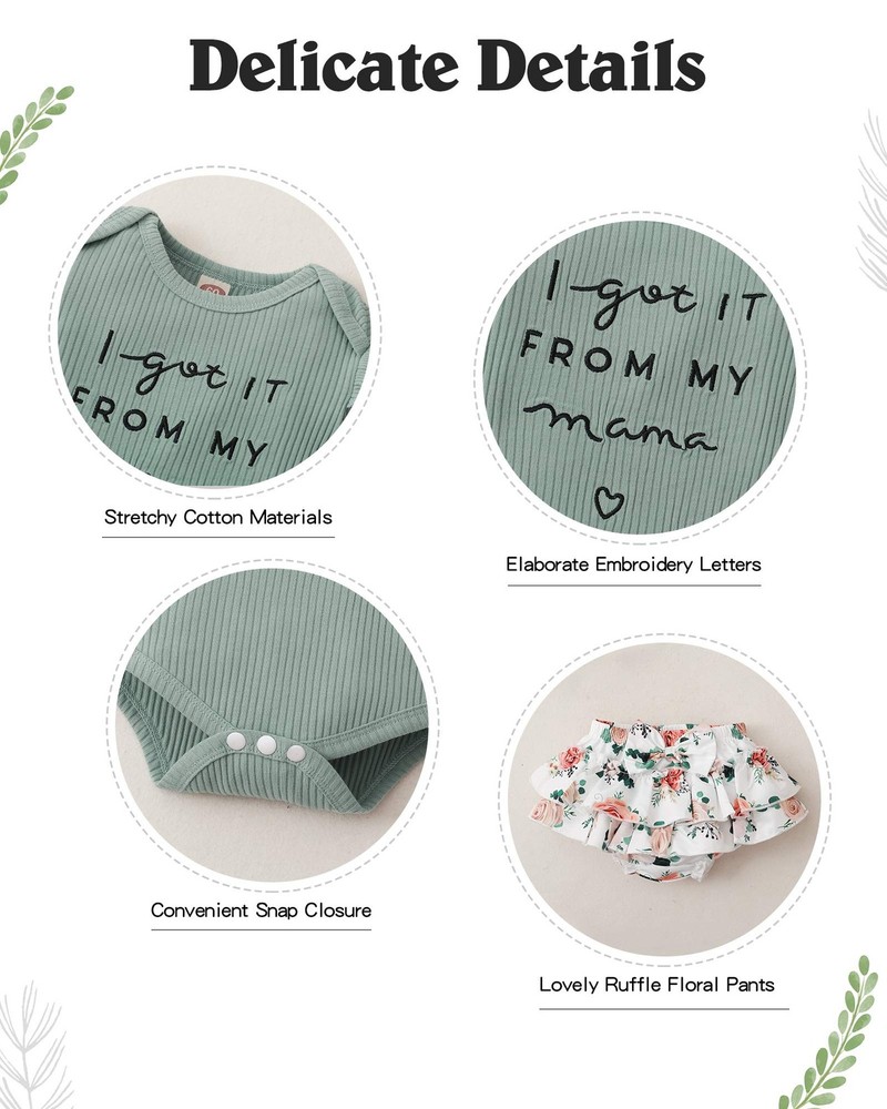 Mioglrie Newborn Baby Girl Clothes Romper Shorts Set 3-6 Months, Lightgreen DescriptionSuitable for baby clothes, 12 month baby girl clothes, baby girls' clothing, baby girl outfits, toddler girl clothes, baby girl clothes 6-9 months, clothes for baby girl, baby girl newborn, cute baby girl clothes, 1 year old girl clothes, clothes for 1 year old girl, baby girl clothes 12 18 months, perfect 3 Pieces baby girl clothes set. Great for baby clothes girl, baby girl gifts, baby stuff for newborn girls, ropa de bebe niña, newborn clothes, baby outfits for girls, daddys little girl baby clothes, newborn outfits for girls, newborn baby girl, baby girl clothes newborn, newborn clothes for girls, 3 month baby girl clothes, baby girls clothes, baby girl newborn, newborn baby girl outfits, baby girl newborn clothes, preemie baby girl clothes, infant girl outfits, baby girl summer outfit, boutique baby girl clothes, new born baby girl, baby girl cloths, newborn baby clothes girl, baby girl clothes 0 3 months, newborn baby clothes girl Product Features Great Quality: Cotton ribbed baby girl romper shorts set bring comfortable feelings. Soft, safe and harmless to baby's skin. Pretty baby girl clothes for gifts Novel Design: Lovely “I got It From My mama ” express great love from family. Super soft and stretchy materials for comfortable dressing and sporting. Pure romper, ruffle princess shorts and matching headband create more appealing impression. Convenient Snap closure for easy diaper changes. Various Occasions: Great baby girls’ clothing for birthday gifts, party and family days. Nice for photography props, dress up and holiday. Comfy for home-wearing and outdoor-playing. Recommended Age: Suitable for newborn baby 0-3 months girl clothes, 3-6 months baby girl clothes, 6 - 12 month baby girl clothes and 12 to 18 month girl clothes and baby girl clothes 18-24 months. Cute Newborn Baby Girl Outfits for Summer Gifts Shipping: Shipping is complimentary within the lower 48 US States. We Do Not Ship to PO/APO Boxes, HI or Alaska We Do Not Ship Outside of the Continental US All items ship within 24-72 hours of Payment For large items that require Freight shipping a valid phone number is required to call and schedule your delivery Terms of Sale and Feedback: Feedback is extremely important to us and eBay If you are satisfied with our transaction, please take a moment to leave Positive Feedback. YOUR Satisfaction is our #1 Priority! If there are any issues, PLEASE contact us BEFORE leaving a neutral or negative rating so that we may resolve any concerns. We PROMISE we can make you happy if you give us a fair chance. Returns / Concerns: All items qualify for returns within 14 - 30 days of receipt. Buyer is responsible for return shipping on any item that is not damaged Please be sure this is an item you want before making your purchase. Customer Satisfaction is our TOP priority! All items are IN STOCK at time of listing. Inventory on eBay changes constantly and it is impossible to maintain a perfectly accurate count of all items. Please do not penalize us if we have to issue you a refund! Thank You For Your Business!