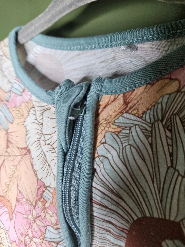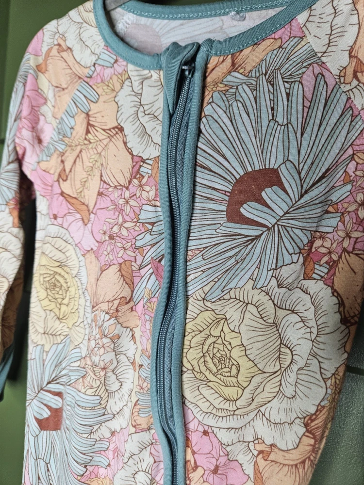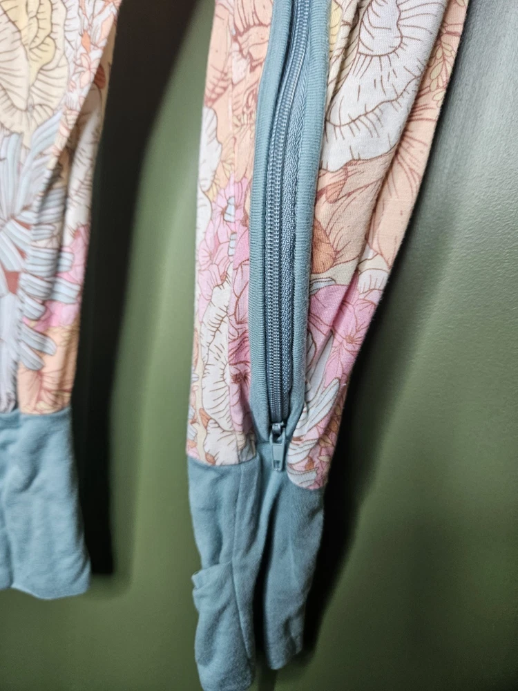 Beautiful floral pattern Miozing bamboo sleeper. This sleeper features double zippers and optional closed toes. Smoke and pet free home.