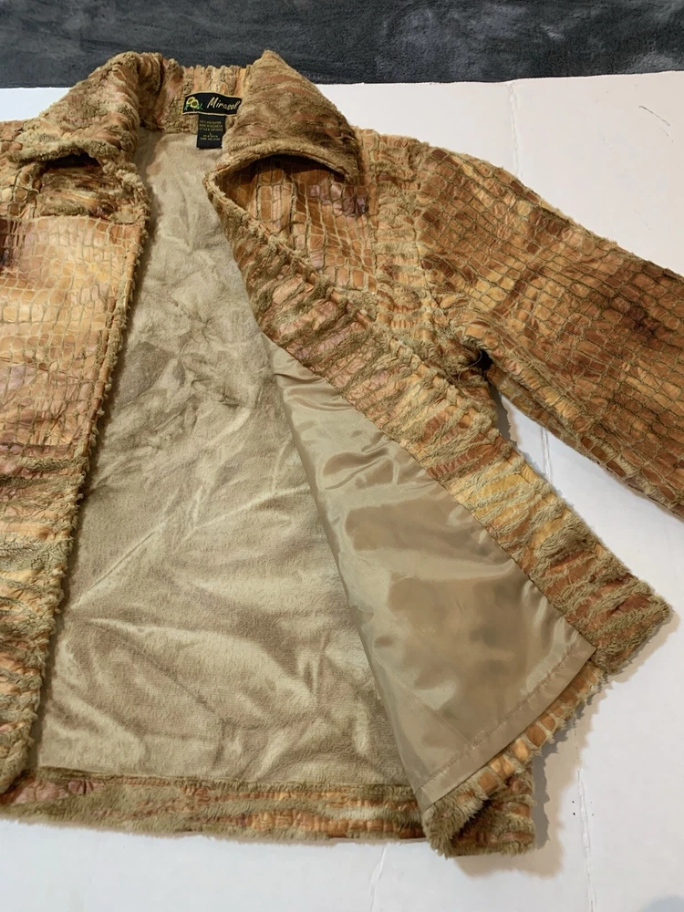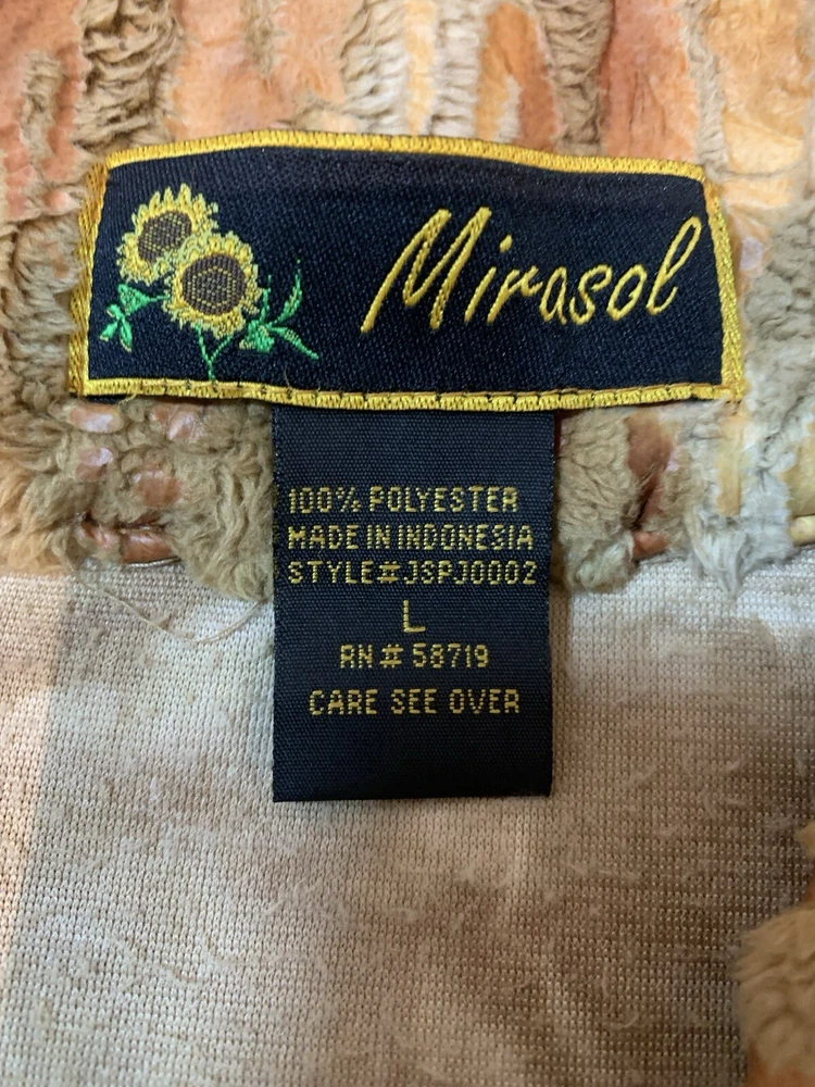 Elevate your wardrobe with this stunning Mirasol Women's Dinner Jacket in gold and brown, perfect for any occasion. The jacket features an open front closure, long sleeves, and a short length that is ideal for summer, fall, and spring. The ruffle accents and check pattern add a touch of elegance to the jacket, making it suitable for both casual and party/cocktail events. Crafted from high-quality polyester, this dinner jacket is machine washable and easy to care for. The jacket is designed to fit regular size women and is available in size large. The Mirasol brand is known for its exceptional quality, and this jacket is no exception. Add this beautiful piece to your collection today!