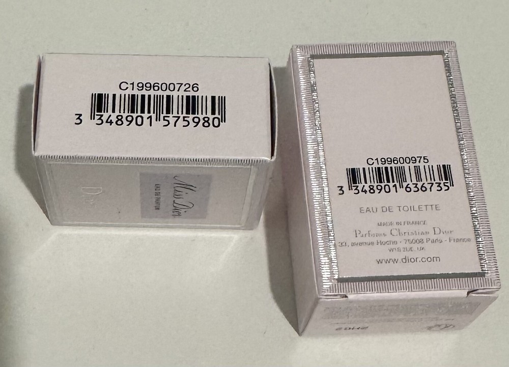 gtin13:Does not applyUPC:Does not applyFeatures:Lot, Dabbler/splashVolume:2 X 5ml/0.16ozPersonalize:NoFormulation:FluidType:EDP & EDTScent:2 DIFFERENT SCENTSCountry/Region of Manufacture:FranceMPN:NAFragrance Name:Miss DiorSize Type:MINIATUREBrand:Dior