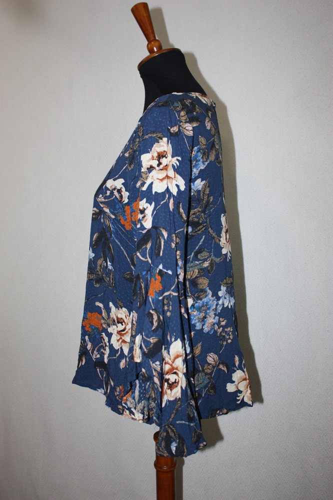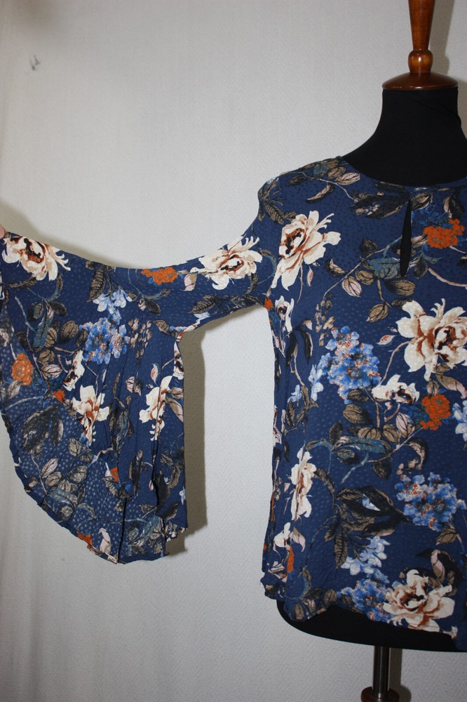 Miss Me S Blue Floral Lightweight Viscose Peasant Top Long Bell Flutter Sleeves