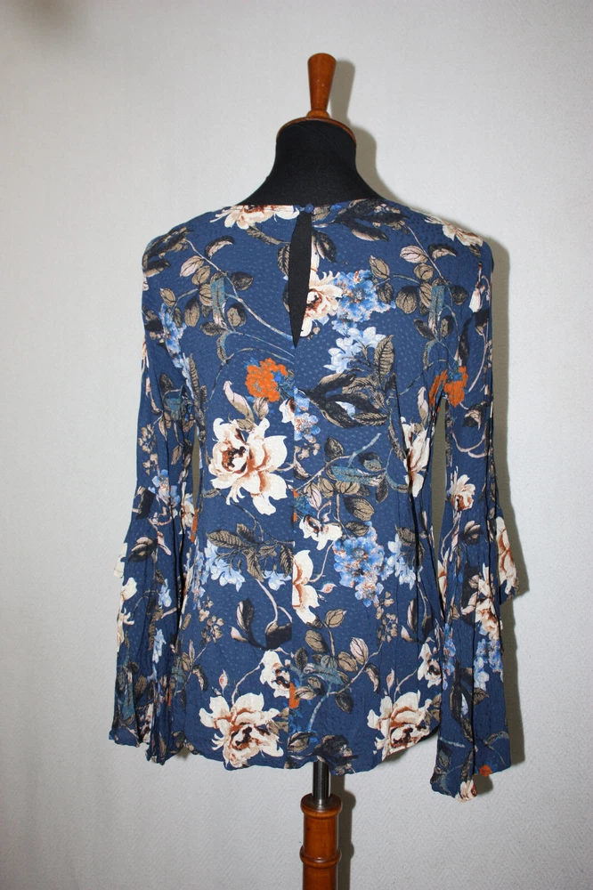 Fabric Type: Rayon Style: Basic Fit: Regular Garment Care: Machine Washable Size: S Sleeve Type: Flutter Sleeve Color: Blue Material: Viscose Type: Blouse Sleeve Length: Long Sleeve Pattern: Floral Theme: Peasant Handmade: No Closure: Pullover Personalize: No Seller Notes: “Excellent condition.” Brand: Miss Me Size Type: Regular Department: Women Country of Origin: China Vintage: No Occasion: Workwear Neckline: Round Neck Features: Lightweight