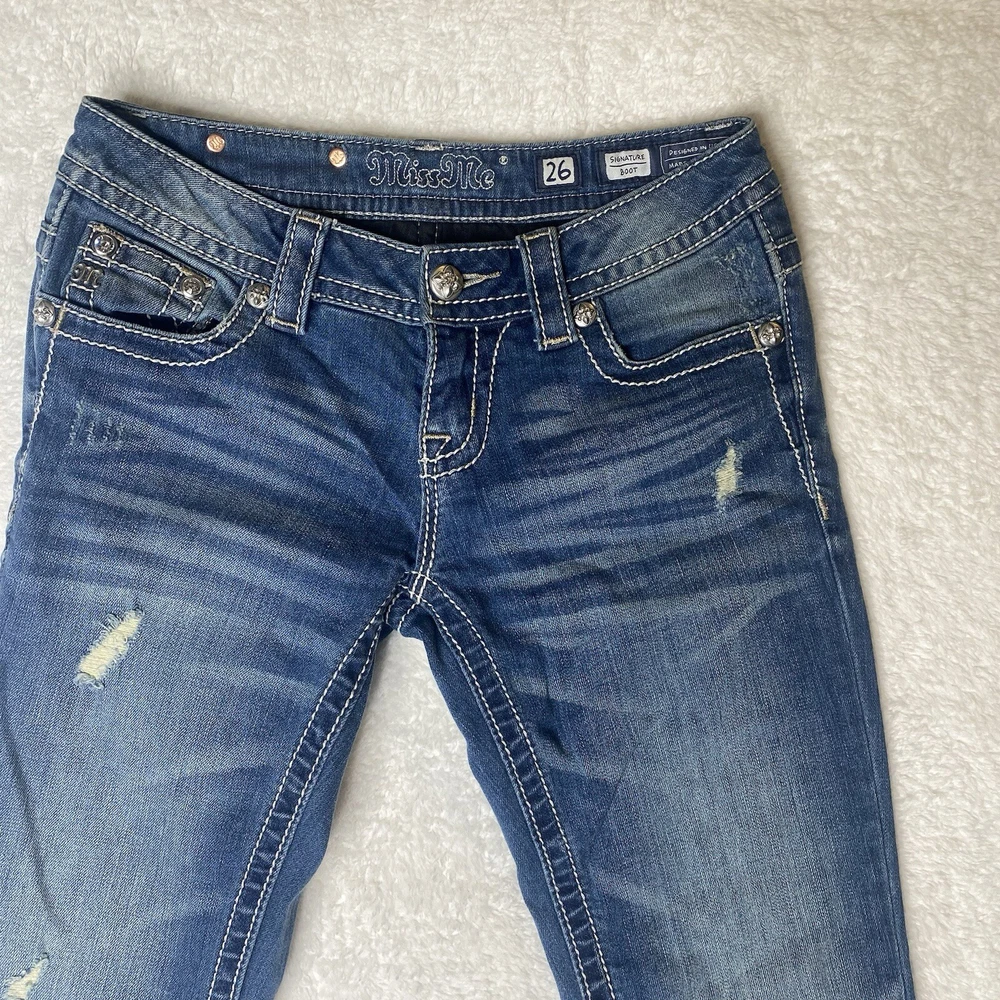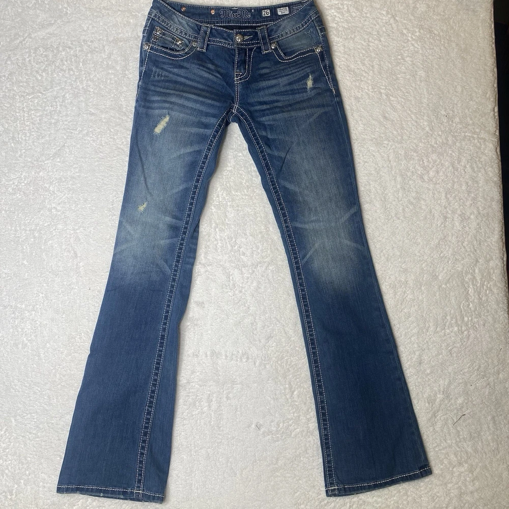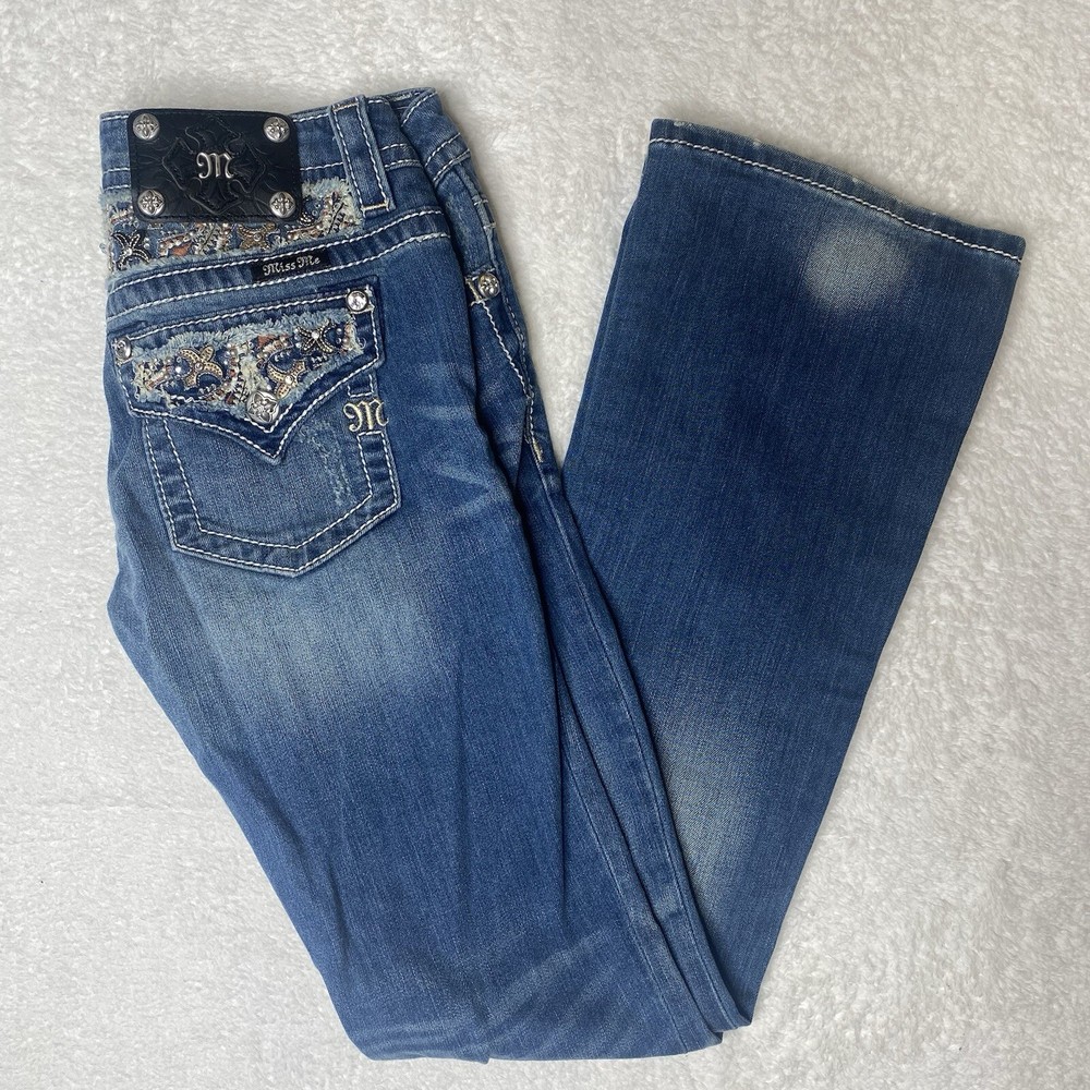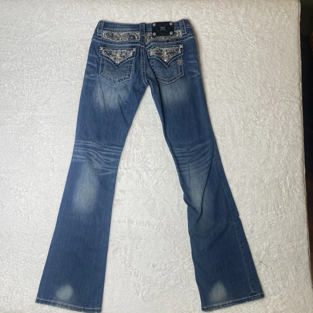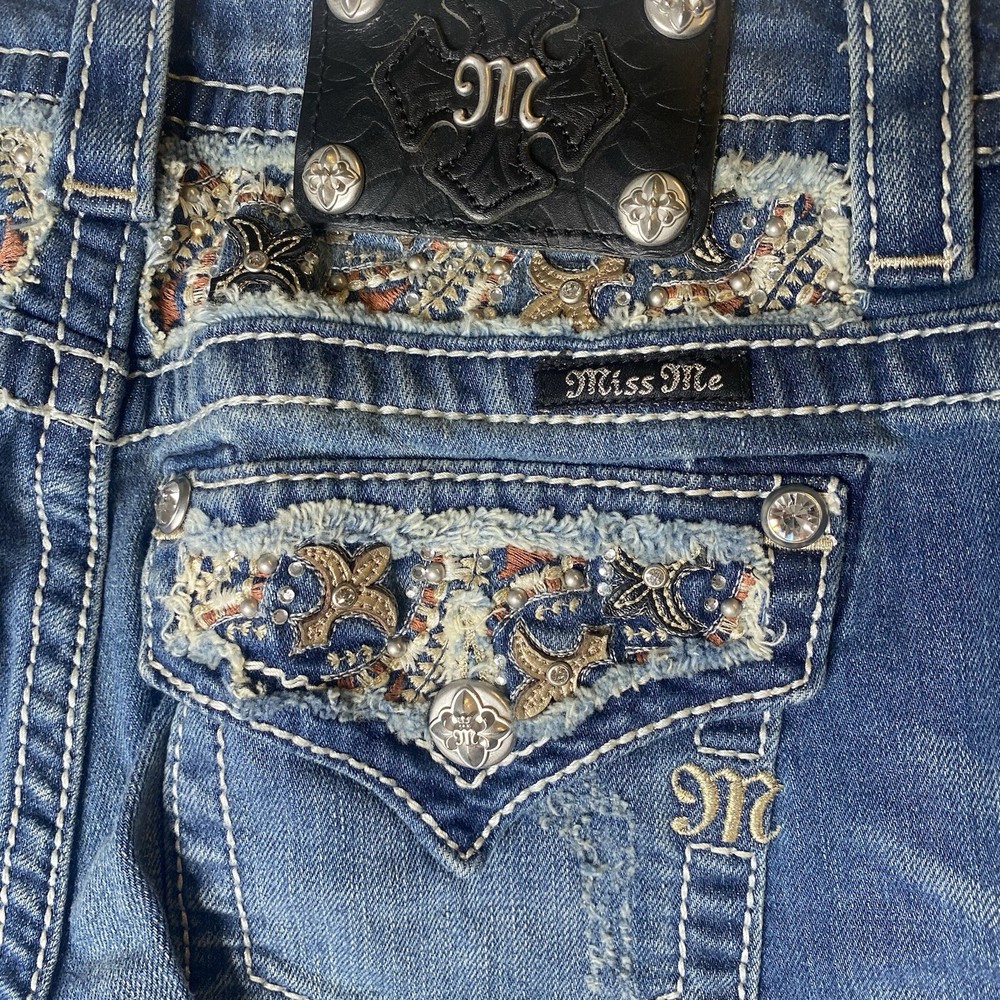 Miss Me Jeans Womens Size 26 Blue Bootcut Studed Western Rodeo Cowgirl Stretch jp8235b