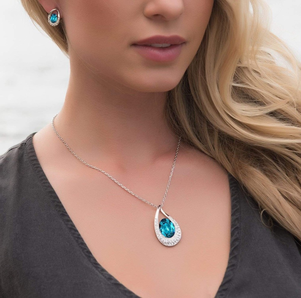 [Presented by Miss New York] Leafael "Angel's Teardrop" Made with Premium Crystals Blue Zircon Jewelry Set Earrings Necklace, 18" +2", Nickel/Lead/Allergy Free, Luxury Gift Box Product Details Color: crystal Brand: Leafael MPN: SNEYT0061SILVER UPC: 722703827943 EAN: 0722703827943 Department : womens Date First Available : January 2, 2018 Manufacturer : Leafael Brand, Seller, or Collection Name: Leafael Metal stamp: Not stamped Metal: alloy Material: Crystal Item Length: 3.7 inches Chain: Cable Clasp: Spring Ring Clasp Resizable: No Number of stones: 12 Model number: SNEYT0061SILVER Our women's fashion jewelry collections are made with premium crystals. Exquisitely exclusive design allows its wearer to stand out with their refined fashion sense and be worn with any kind of attire be it classy or casual. Ideal accessory gift for women of all ages! Made with environment friendly materials for our sensitive customers. Packed with exclusively elegant white, silver-embossed jewelry gift box protection as well as the much needed aesthetics. Lifetime money back and lifetime replacement guarantee in case of any damage that might occur through regular everyday use.