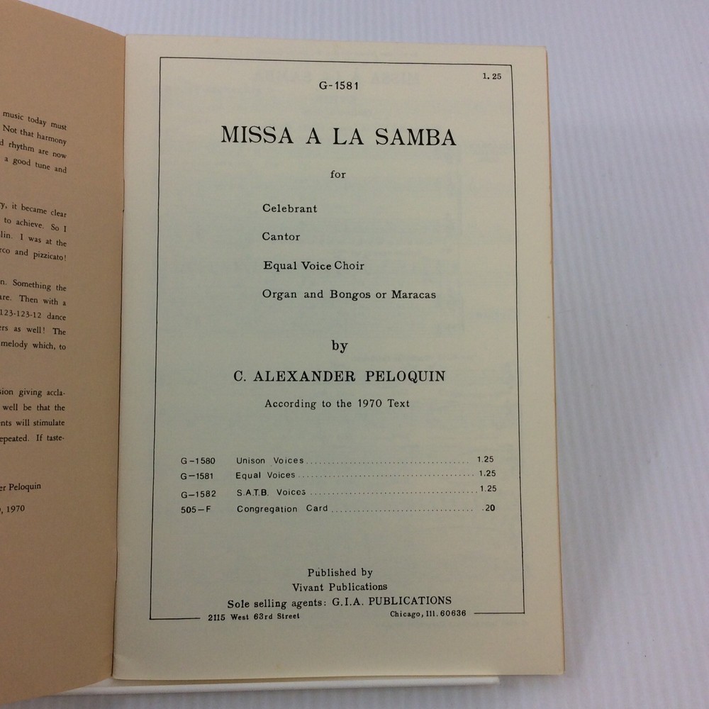 Missa A Aa Samba Peloquin 1970 Choral Music Songbook