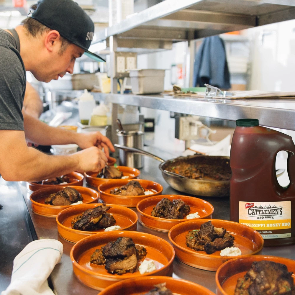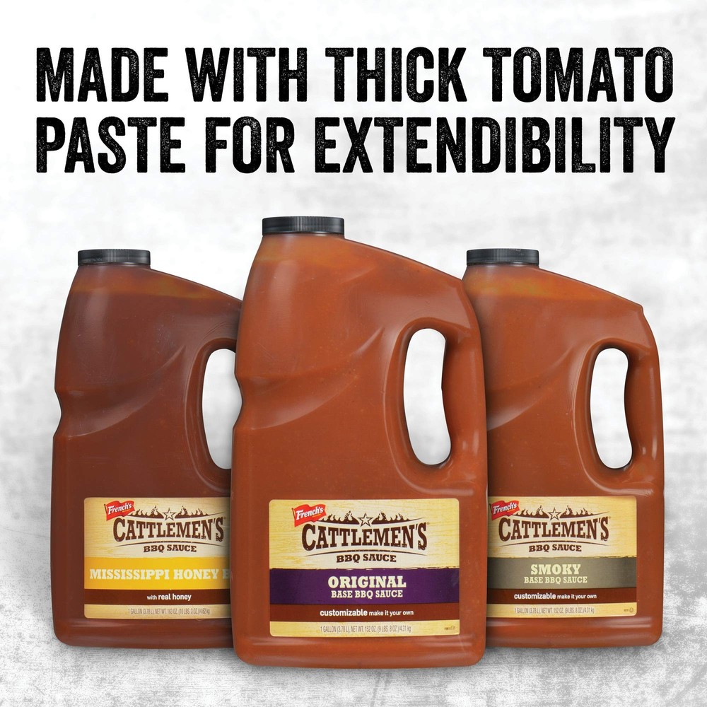 Formulated with the needs of food service professionals in mind, Mississippi Honey BBQ Sauce offers both taste and performance. This sauce blends flavors like sweet honey, tangy vinegar, rich tomato paste and hickory smoke to perfectly complement pork, chicken, beef and vegetable dishes. This honey barbecue sauce is highly versatile, so you can use it to bring signature flavor to a variety of recipes, from salads and dips to BBQ and beyond. Mississippi Honey BBQ Sauce does not include gluten, dairy, starches, fillers, caramel color or potential allergens like eggs, fish, soybeans, tree nuts or peanuts. As a kosher and vegetarian product, barbecue sauce is perfect for everyone to enjoy. When you use this honey barbecue sauce at your restaurant, you can benefit from its: - Convenience: Developing the perfect barbecue sauce takes time. Allow back-of-house staff to skip the trial and error by buying a sauce that comes ready to use right out of the bottle — no preparation necessary. - Affordability: Mississippi Honey BBQ Sauce has an affordable price, especially when you buy in bulk. Plus, each bottle is extendible up to 20 percent, which means you can restock less often. - Performance: This honey barbecue recipe uses tomato paste instead of tomato puree to give it a thicker consistency and increase its ability to cling to food. The lack of starch also prevents burning, whether you cook barbecue low and slow or over open flame. Cattlemen’s Mississippi Honey BBQ Sauce is shipped and stored at ambient temperatures and has a shelf life of 15 months. Protect the product from freezing and store with the lid tightly closed at room temperature to reduce the risk of contamination and maintain maximum product quality. Refrigeration after opening is recommended to preserve the product's flavor. SWEET AND TANGY TASTE: Cattlemen’s Mississippi Honey BBQ Sauce features an intricate blend of Grade A honey, tangy vinegar, natural hickory smoke, rich tomato paste and a hint of garlic for a complex, sweet flavor profile and smooth, dense consistency MADE FOR CHEFS: Built exclusively for food service, Cattlemen’s Mississippi Honey BBQ Sauce provides thick tomato paste for better coverage and cling and includes no starches and fillers to prevent burning no matter what barbecue cooking method you use FEEL GOOD BBQ SAUCE: Cattlemen’s Mississippi Honey BBQ Sauce is kosher, vegetarian, gluten-free and dairy-free, the sauce contains no starches, fillers, caramel color, eggs, fish, peanuts, tree nuts or soybeans CONVENIENT AND EASY TO USE: This sweet and tangy barbecue sauce is perfect for bulk buying and restaurant use; the 1-gallon jug is extendible by up to 20 percent for increased profits and saves valuable time and labor over preparing from scratch VERSATILE SAUCE: Versatile, full of flavor and providing exceptional cling and coverage, Cattlemen’s Mississippi Honey BBQ Sauce works great as a dip, as a salad dressing and when used in barbecue recipes for pork, beef, chicken and vegetables