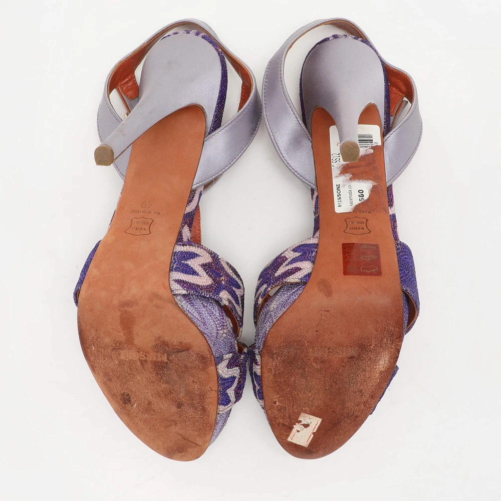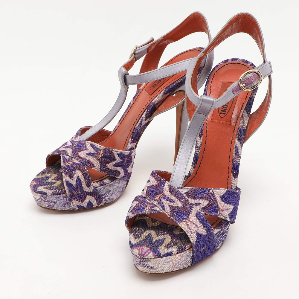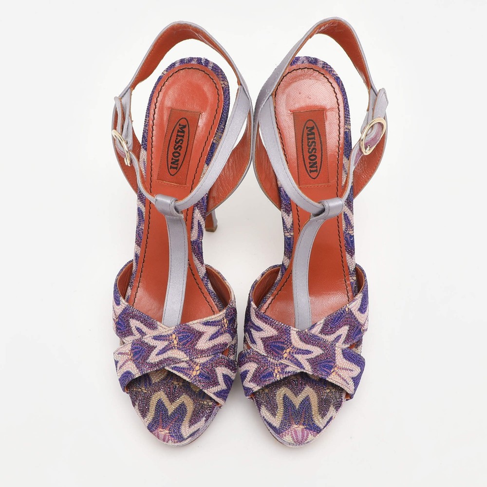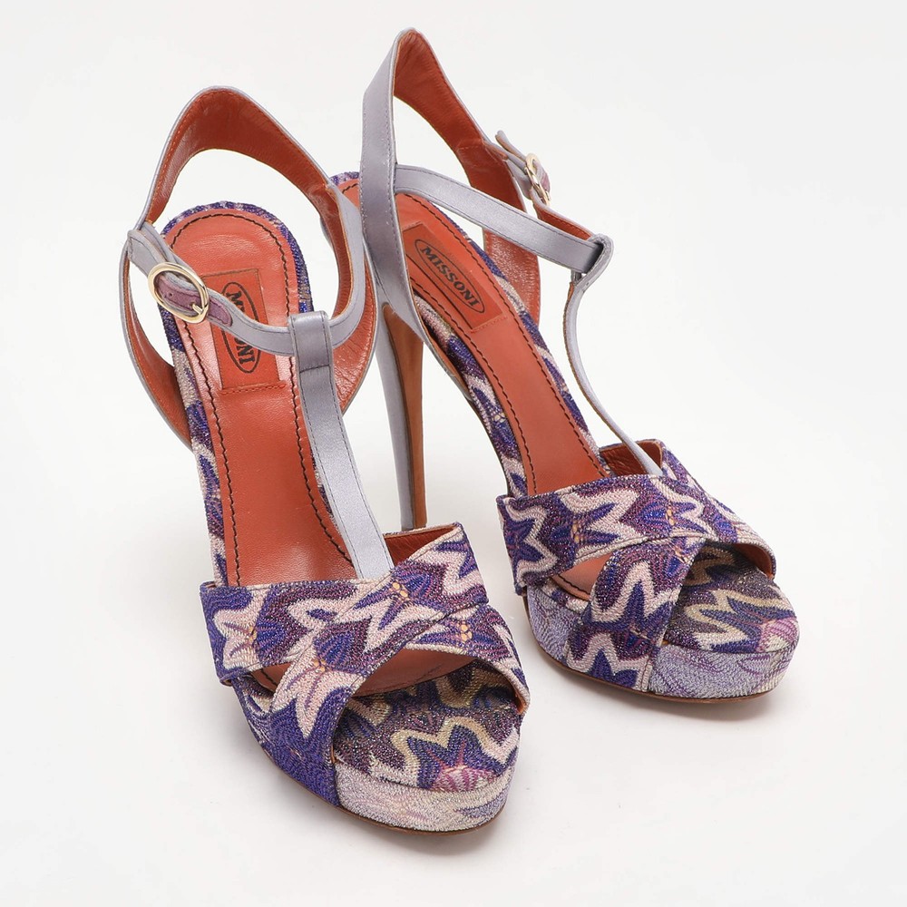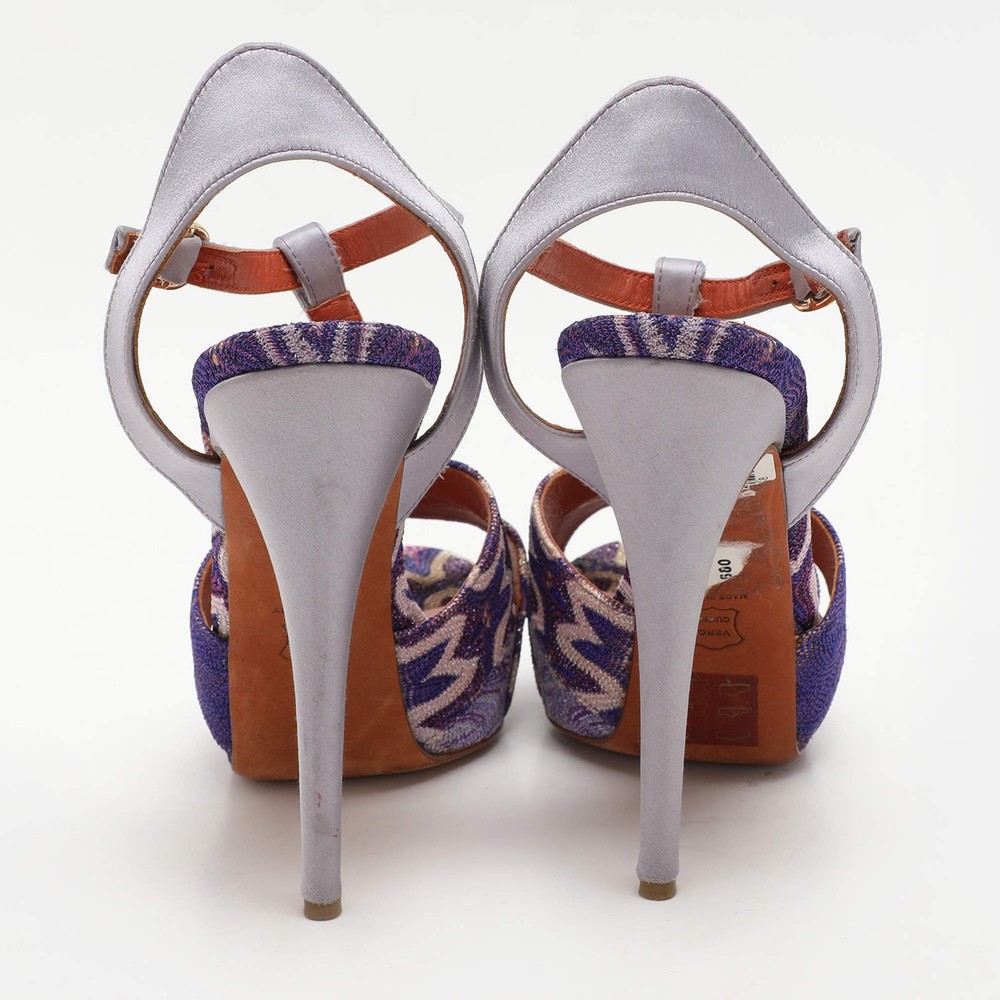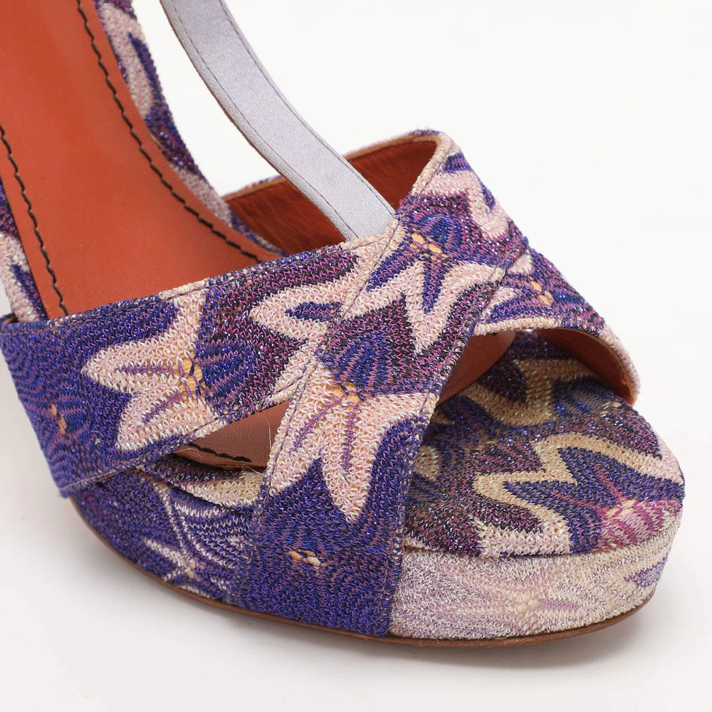Missoni GreyPurple Knit Fabric and Leather TStrap Platform Sandals Size 40