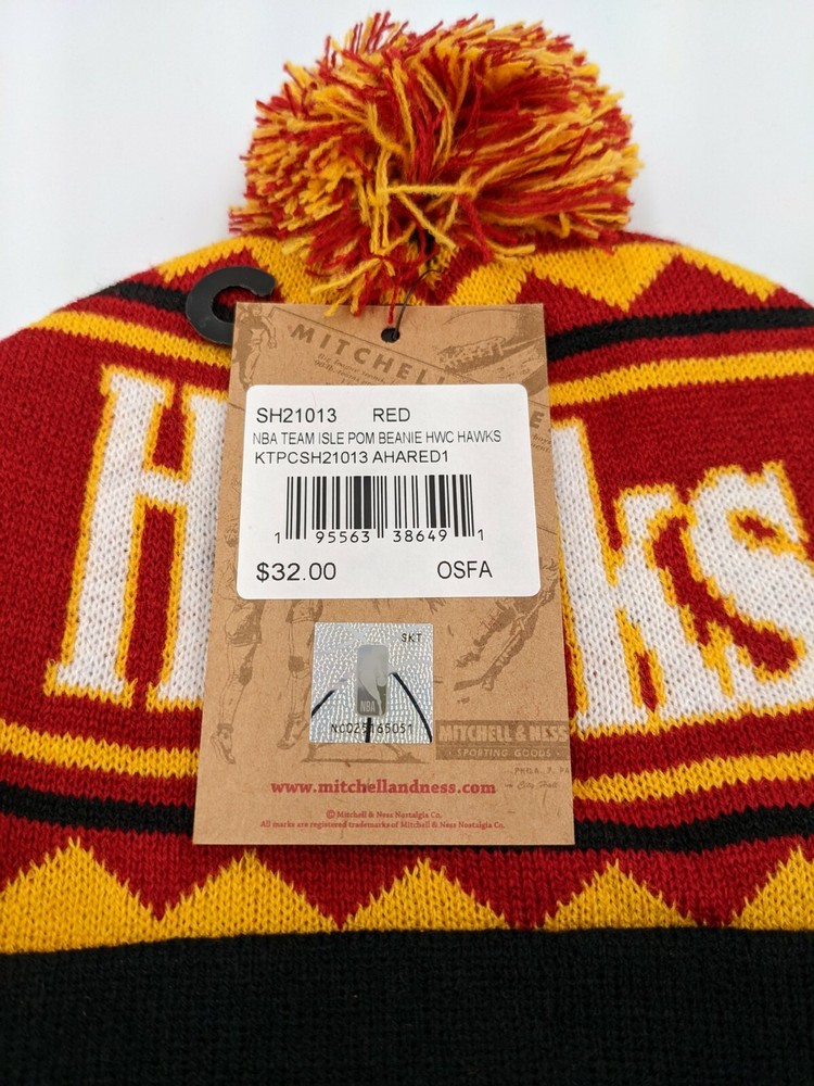 Mitchell & Ness Atlanta Hawks Isle HWC Pom Beanie Hat Brand New with Tags One size fits all