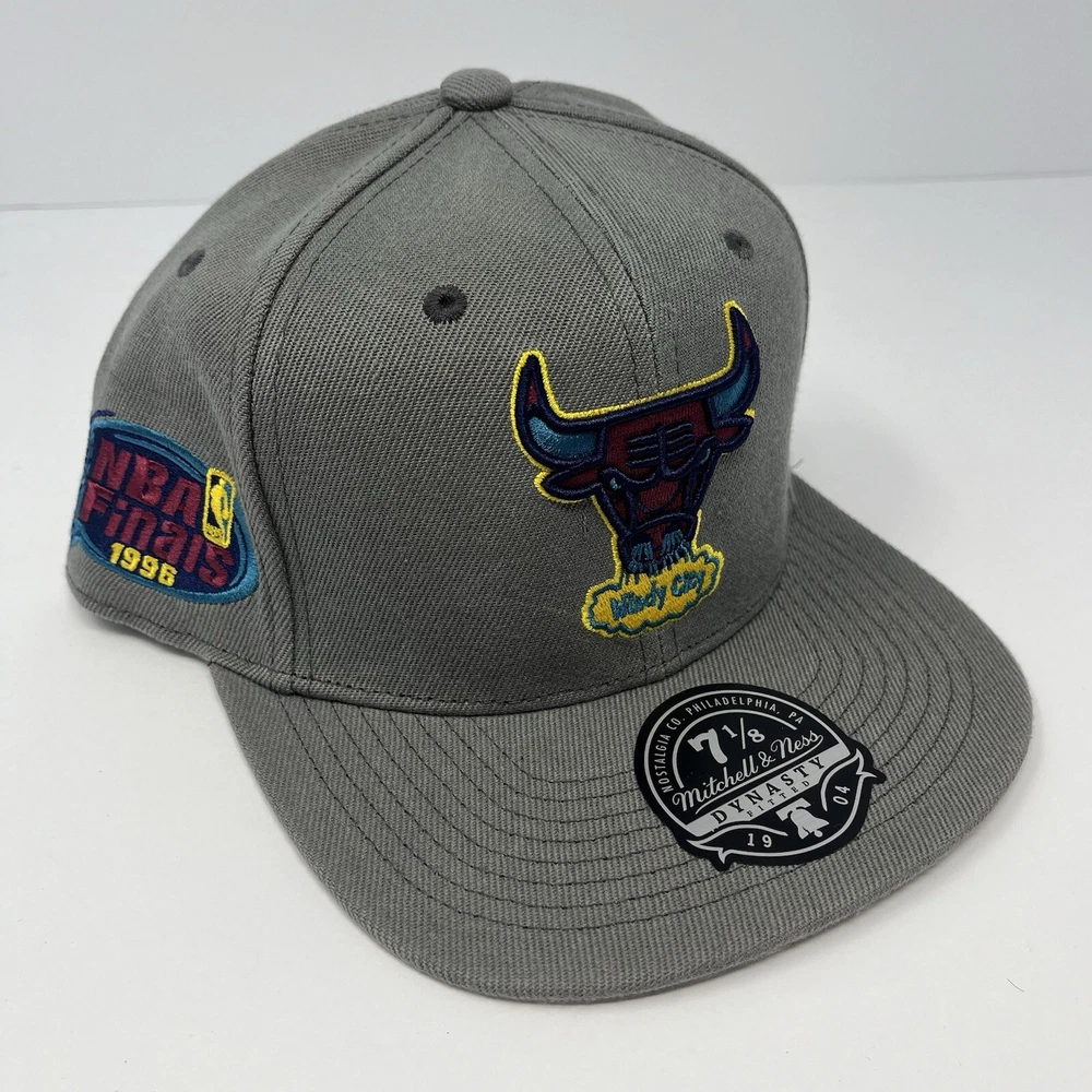 Mitchell & Ness Chicago Bulls HWC Gray 96 Finals Fitted Hat Cap Mens Size 7 1/8
