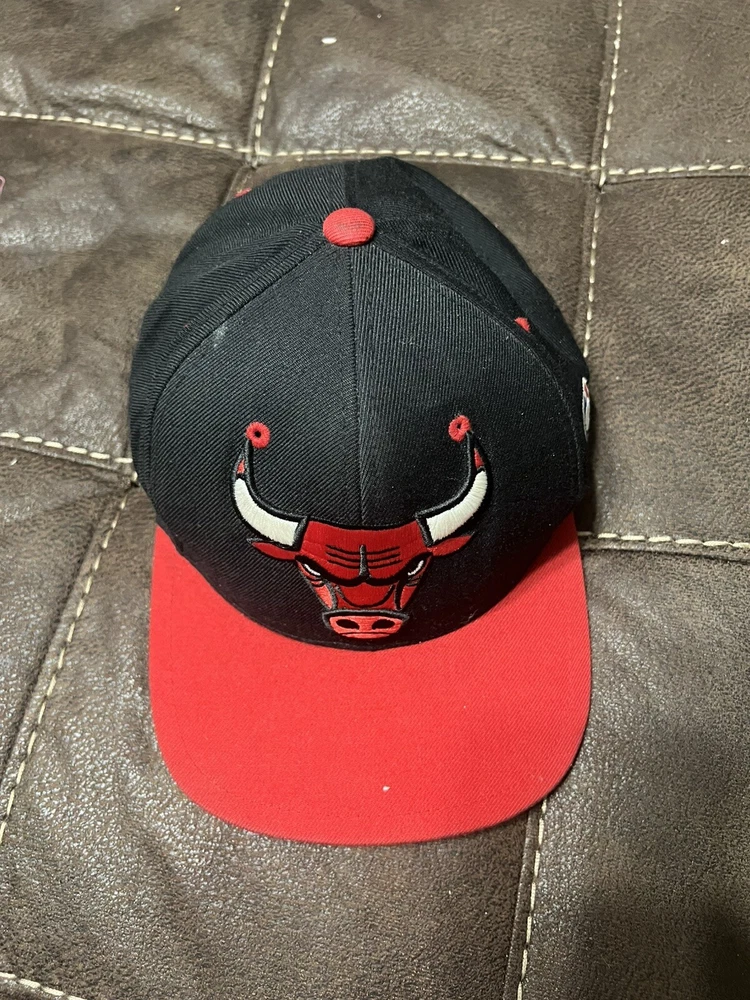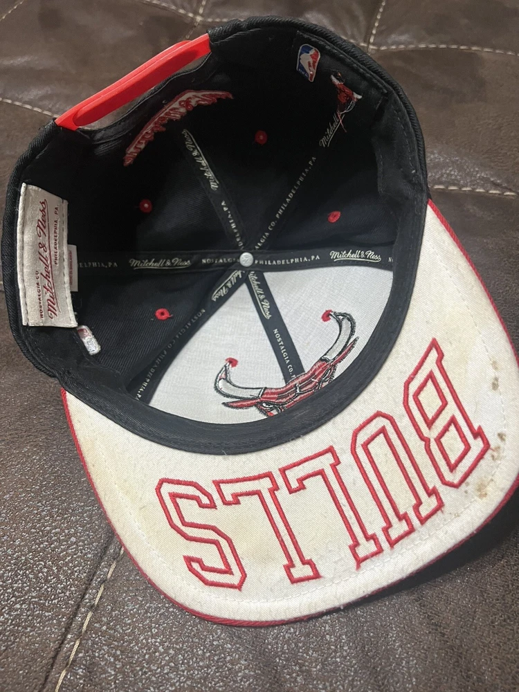HomeMitchell & Ness Chicago Bulls Snapback Hat Cap Red/Black/White Eyes
