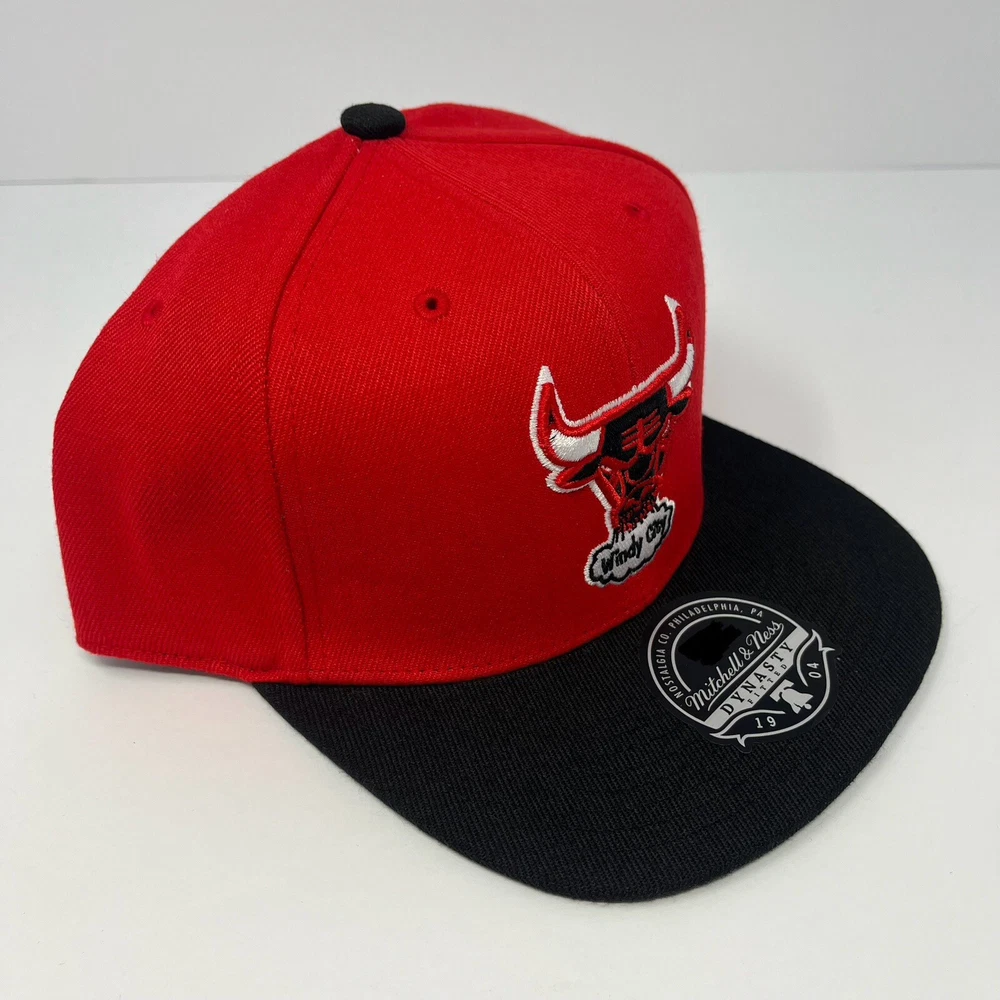 Mitchell & Ness Chicago Bulls Windy City Red Black Hat Cap Fitted Men Size 7 3/8