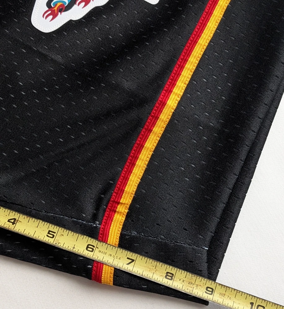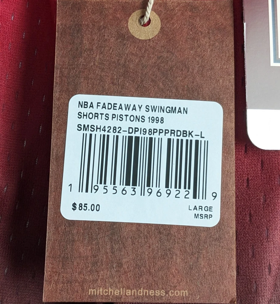 Mitchell & Ness Detroit Pistons Swingman Fadeaway 1998 NBA Shorts Men's Size L New MSRP $85 Product Details: *Brand-new with Mitchell & Ness clothing tags *Men's Size Large L (At Knee Length) *Style: SMSH4242 *Colorway: Maroon/Black/Green/Yellow/Gold/Red/White *Classic Detroit Pistons Logo *Two total pockets on front *Inseams: 9 in *Total Length on leg: 21 in *Retails for $85+tax *100% Authentic Mitchell Ness shorts Item Condition: *As a seller, I'm not responsible for manufacturer flaws. What you see in the pictures is exactly what you will receive . Shipping Details: *Shorts will be wrapped in protective plastic during transit to the customer *Upon completion of payment, shoes will be immediately boxed and dropped off at a USPS, FedEx, or UPS Please view our store for more sneakers, boots, cleats, and clothing items. Please follow our store for special deals/offers! Thanks for looking!