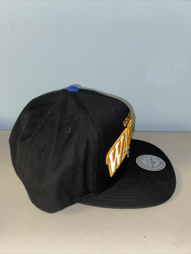 The Mitchell & Ness Golden State Warriors Adjustable SnapBack is an officially licensed NBA cap in black, featuring the Hardwood Classics design. This men's hat is designed for the regular season and showcases the team's logo. Made in Bangladesh, this adjustable cap is perfect for fans of the Golden State Warriors looking to show their support in style.