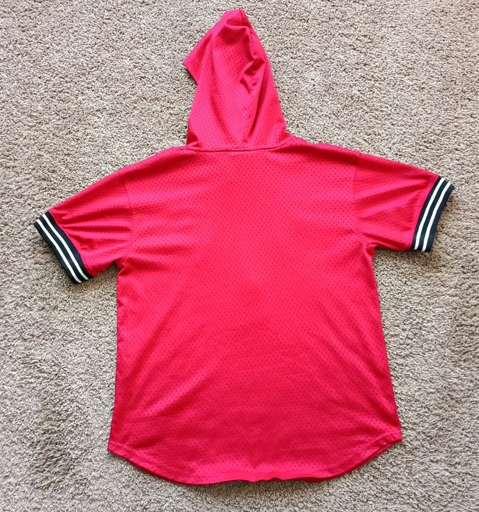 Mitchell Ness Jersey Kids Size Large Chicago Bulls Graphic Hooded Red -Preowned In Amazing Condition No Rips Or Stains -Pit To Pit (19 inches) -Length. (25 inches)