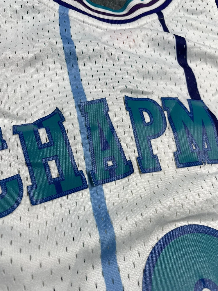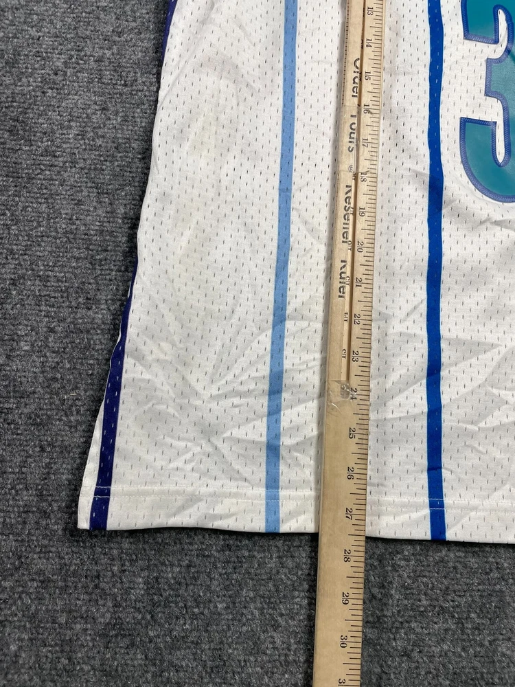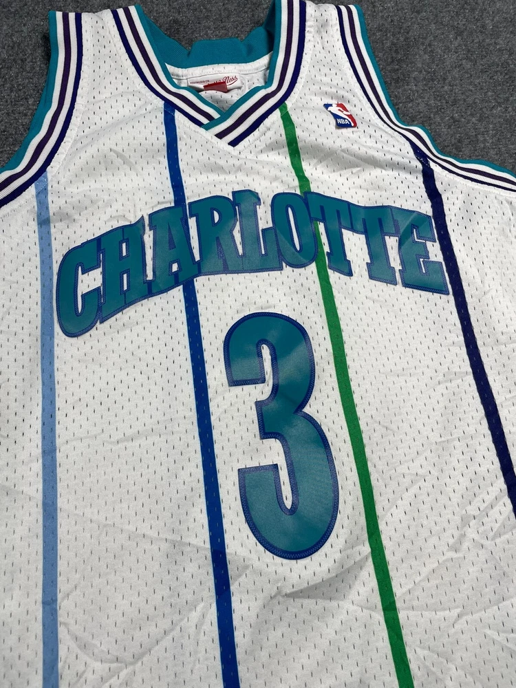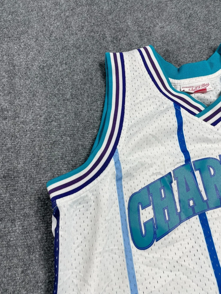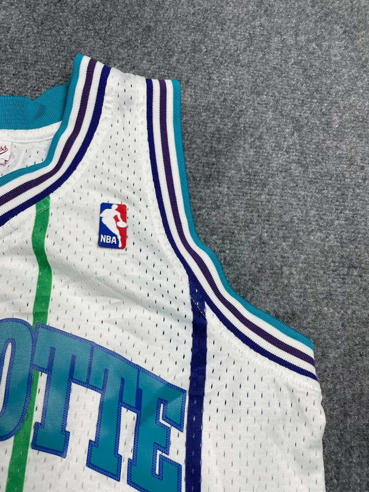 Show off your love for the Charlotte Hornets with this Mitchell & Ness Rex Chapman Swingman Jersey. Made with high-quality materials, this white jersey features stripes for a classic look. It's perfect for any fan of the National Basketball Association (NBA) and comes in size L for men. This jersey is a must-have for any basketball enthusiast and is ideal for regular season games. The Mitchell & Ness brand is known for its quality products, and this jersey is no exception. It's made in China and features the Charlotte Hornets team logo, making it a great addition to any fan's collection. Get yours today and show your support for the team!