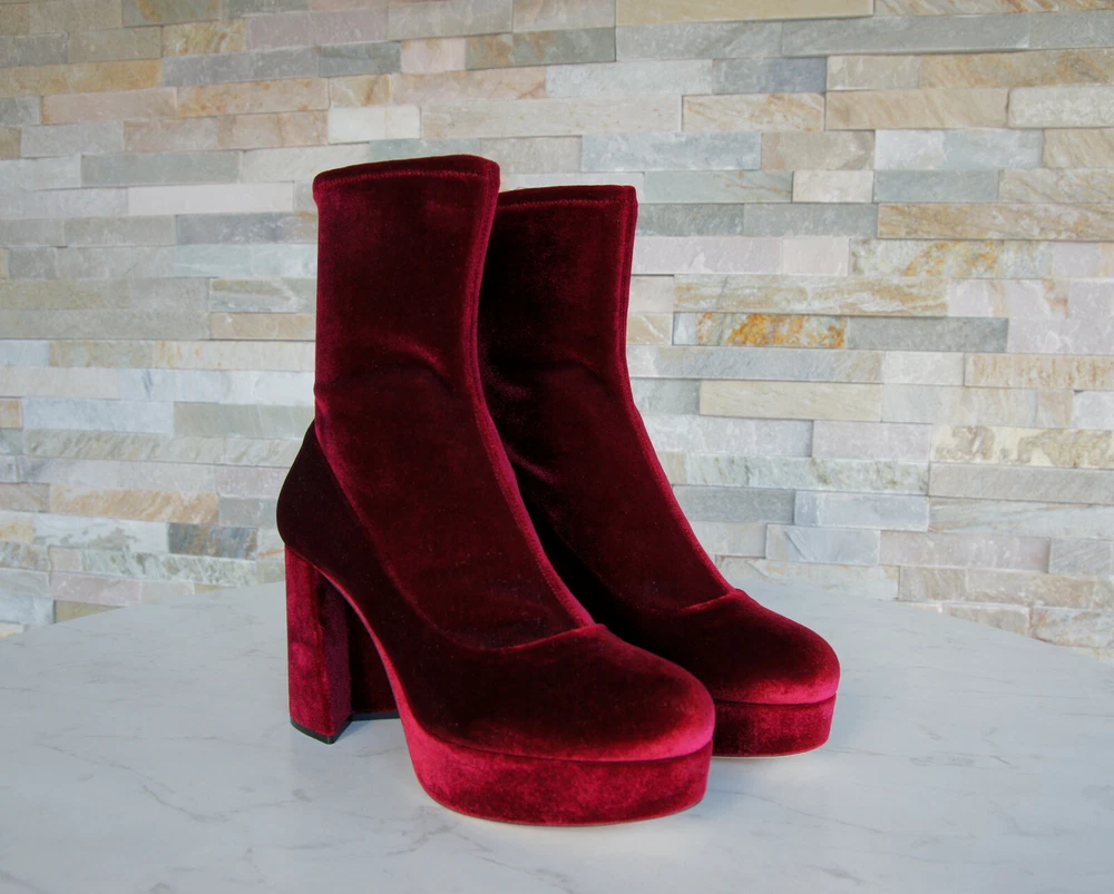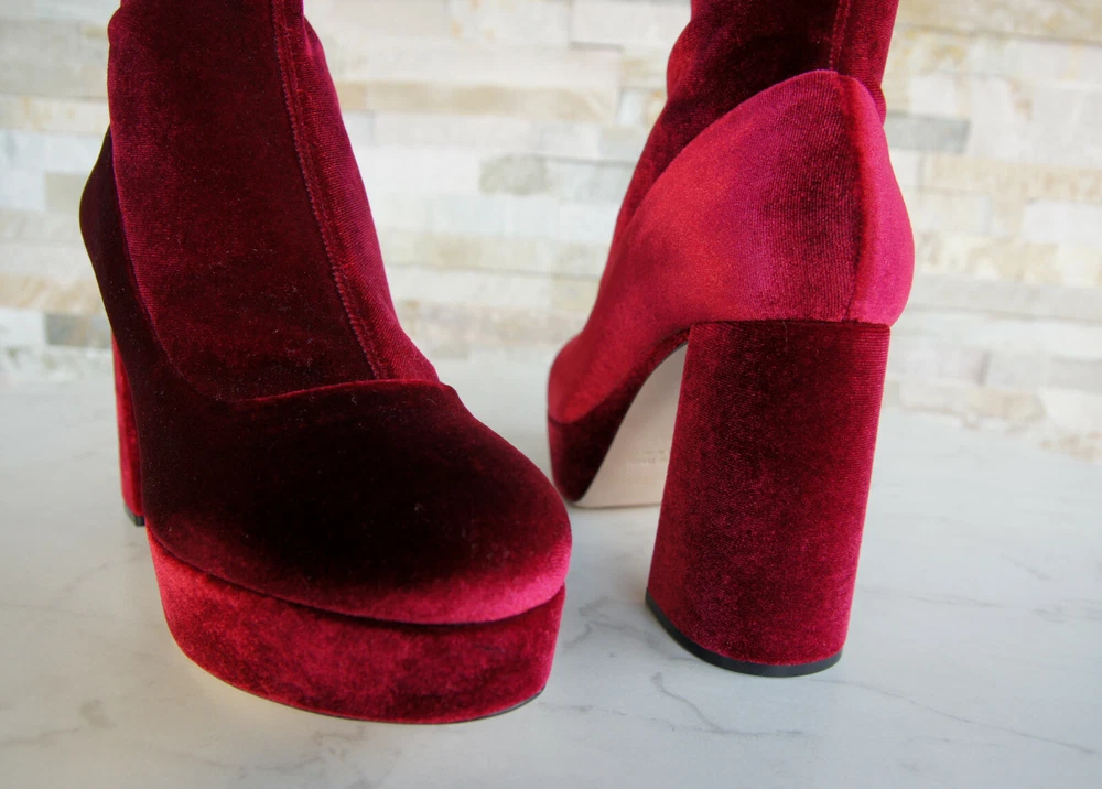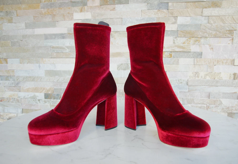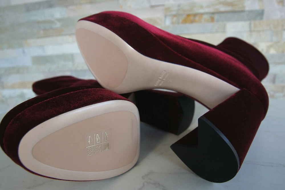 ++++ we speak English ++++ parliamo italiano ++++ nous parlons francais ++++ MIU MIU Exclusive platform ankle boots made of supple stretch velvet. Platform sole and heel also made of velvet. Liner made of leather and stretch fabric. Leather and rubber outsole. MIU MIU Lettering on the insole and outsole. Made in Italy Size / size EU 39 5UP059 Name: VELLUTO STRETCH Color: BORDEAUX Material: stretch velvet Heel height at the front 43.5 cm at the back 10 cm Shaft height from heel / shaft height 17.5 cm Shoes are in MIU MIU Box delivered with shoe bag new and unworn!!! Check out mine other items By all means, take me into yours Favorites on ++++ we speak English ++++ parliamo italiano ++++ nous parlons francais ++++ · Fees, taxes and duties for importing goods are not included in the item price or the shipping costs. These costs are to be borne by the buyer / Import duties, taxes and charges are not included in the item price or shipping charges. These charges are the buyer's responsibility . · Please check with your local customs authority prior to bidding and purchasing to determine what additional charges may apply/ Please check with your country's customs office to determine what these additional costs will be prior to bidding/buying. · Finally, one more note: · As an outlet, we mainly carry models from past collections. Some of the shoes were already on sale. Therefore, it may happen that the soles of the shoes show traces from the fitting, the shoe bag is missing or the box is no longer as new. Our shoes are all new and unworn!! · Fees, taxes and duties for importing goods are not included in the item price or the shipping costs. These costs are to be borne by the buyer / Import duties, taxes and charges are not included in the item price or shipping charges. These charges are the buyer's responsibility. · Please check with your local customs authority prior to bidding and purchasing to determine what additional charges may apply/ Please check with your country's customs office to determine what these additional costs will be prior to bidding/buying. · As an outlet, we mainly carry models from past collections. Some of the shoes were already on sale. Therefore, it may happen that the soles of the shoes show traces from the fitting, the shoe bag is missing or the box is no longer as new. Our