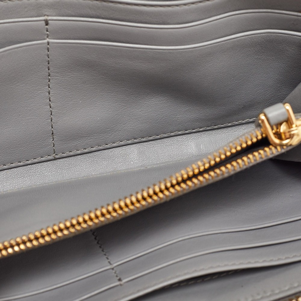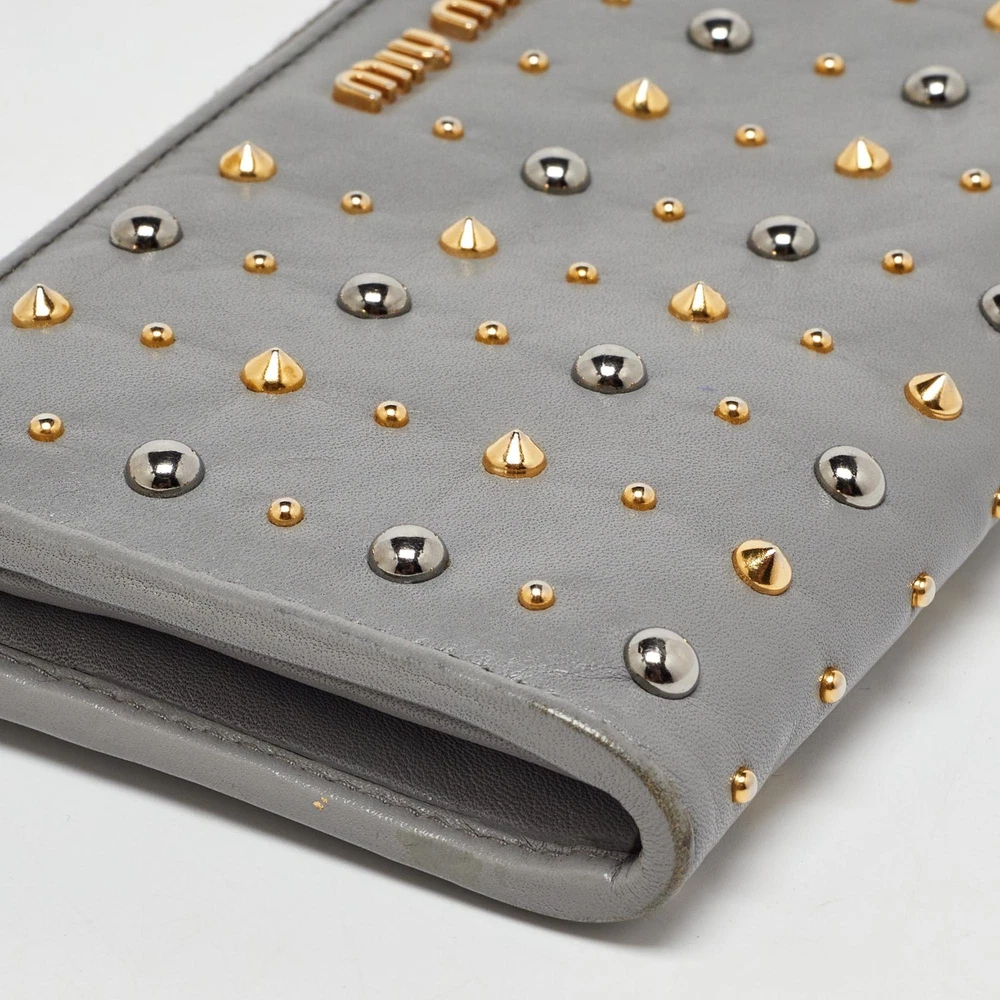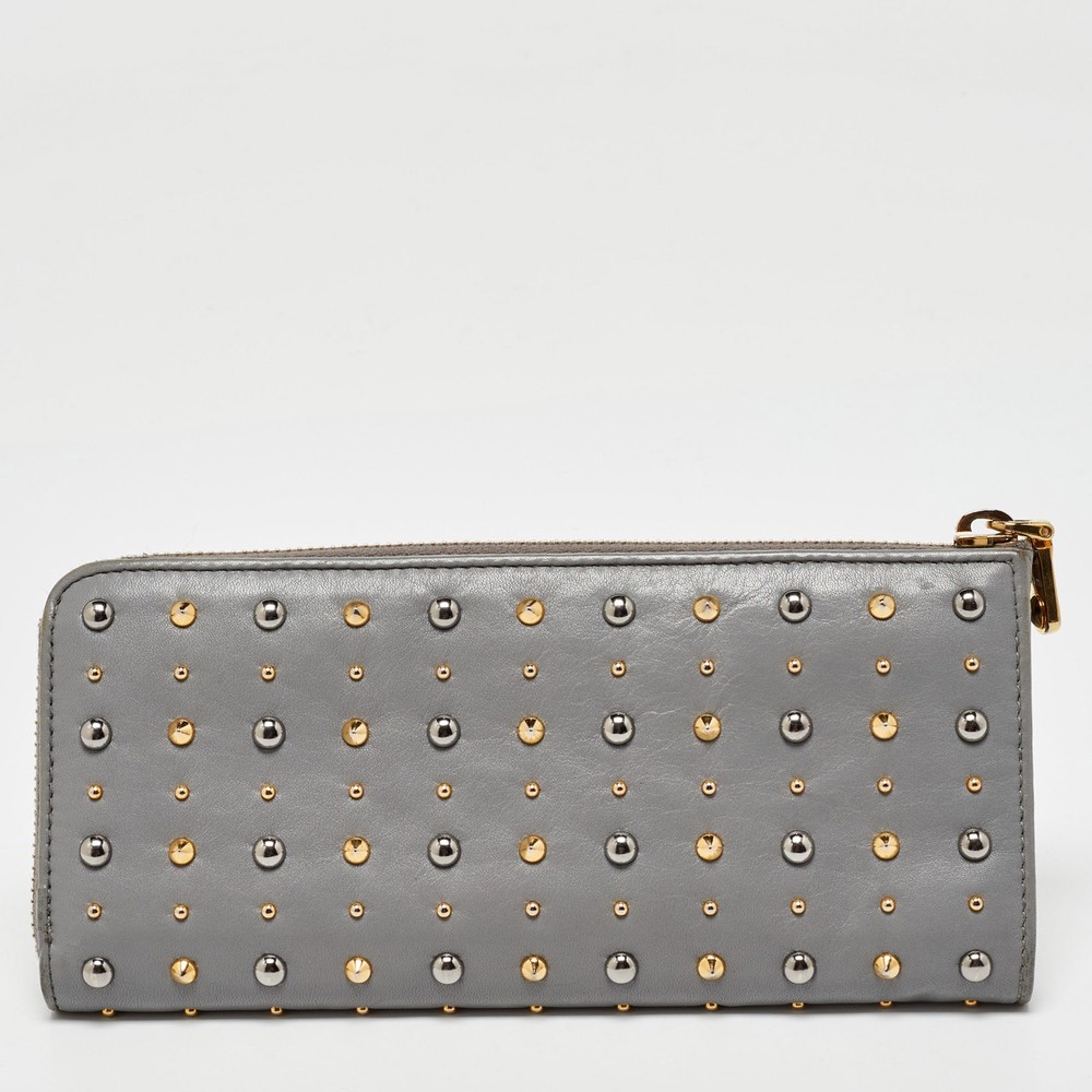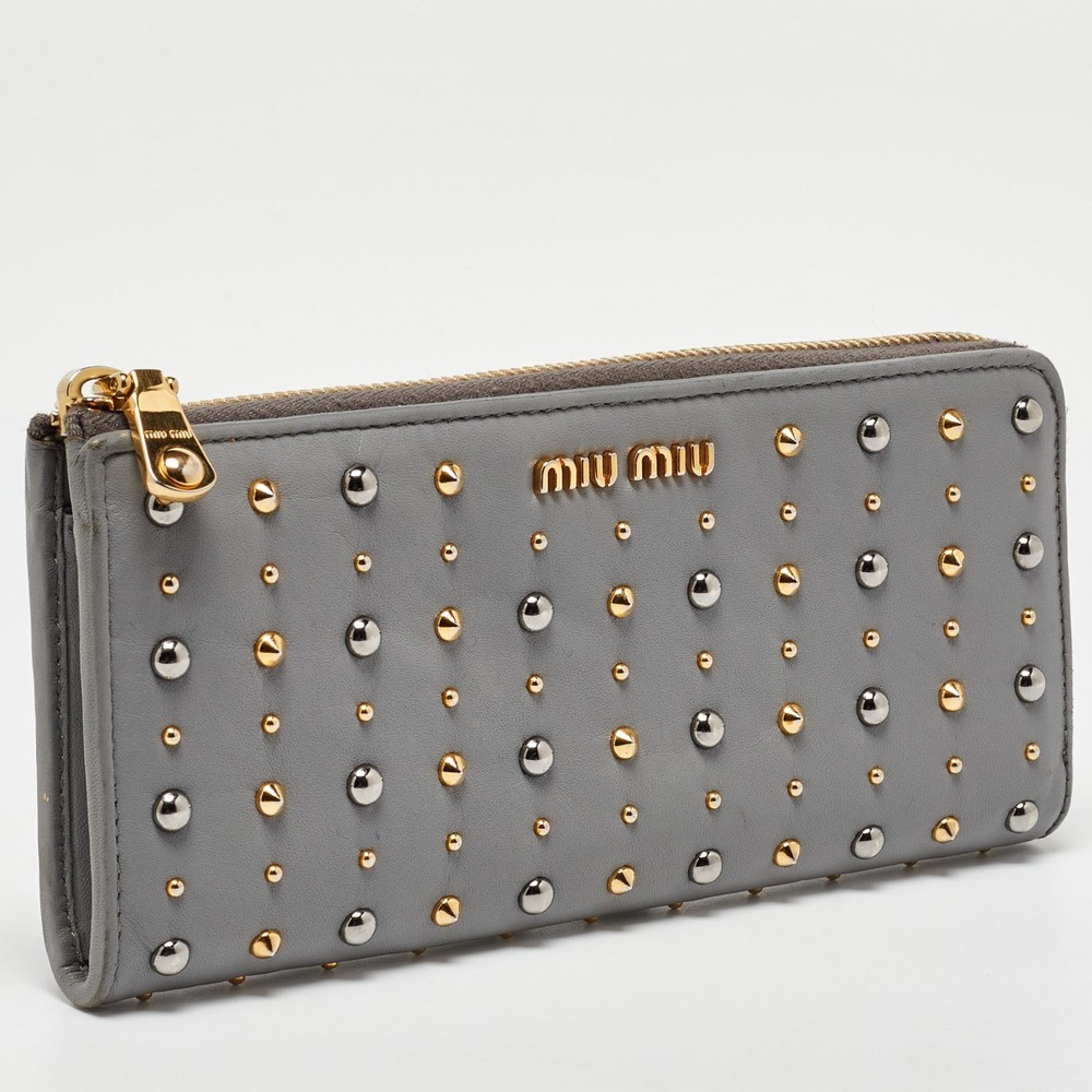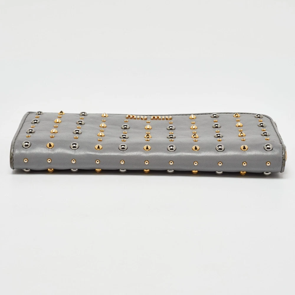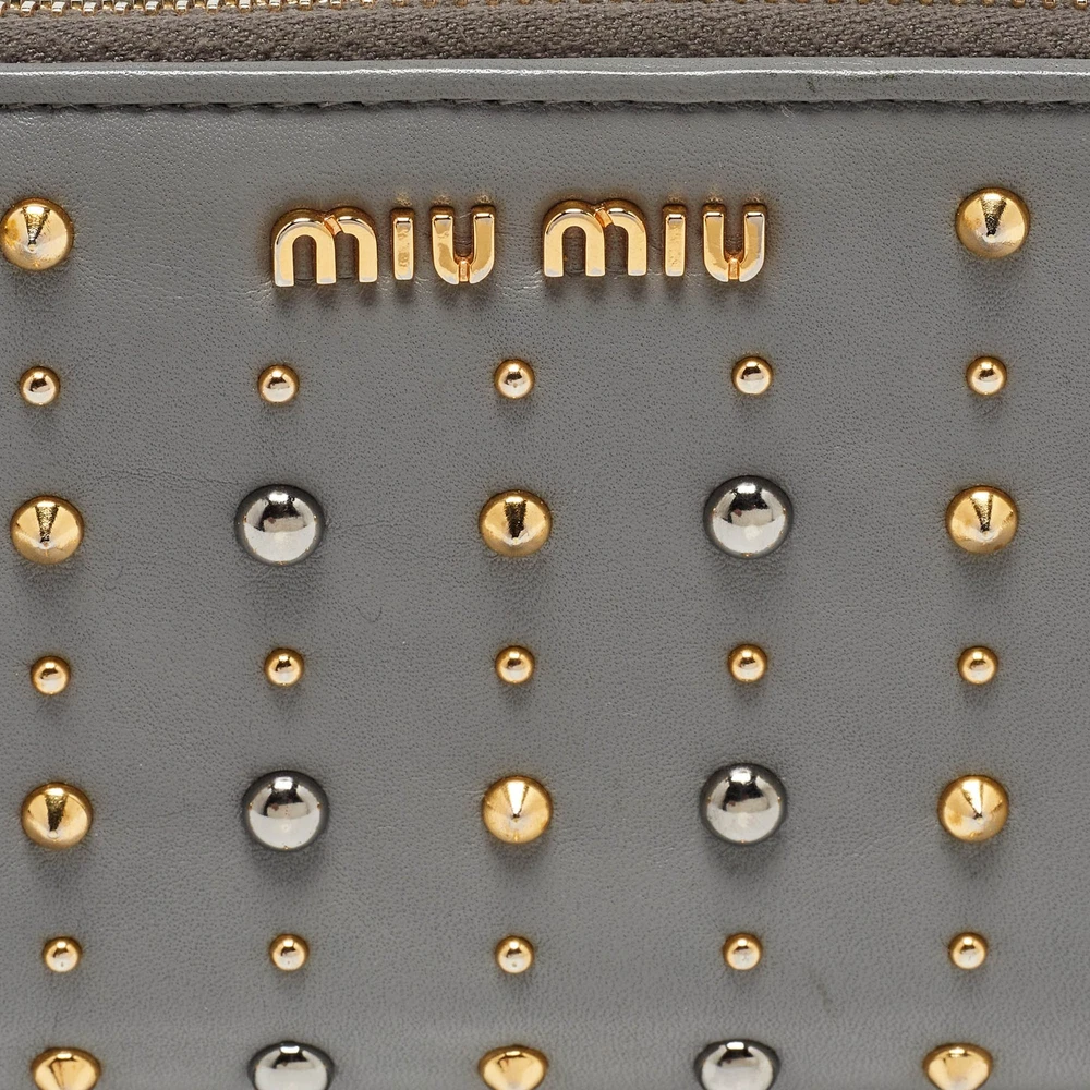 Miu Miu Grey Leather Studded Zip Continental Wallet with Stud Detailing