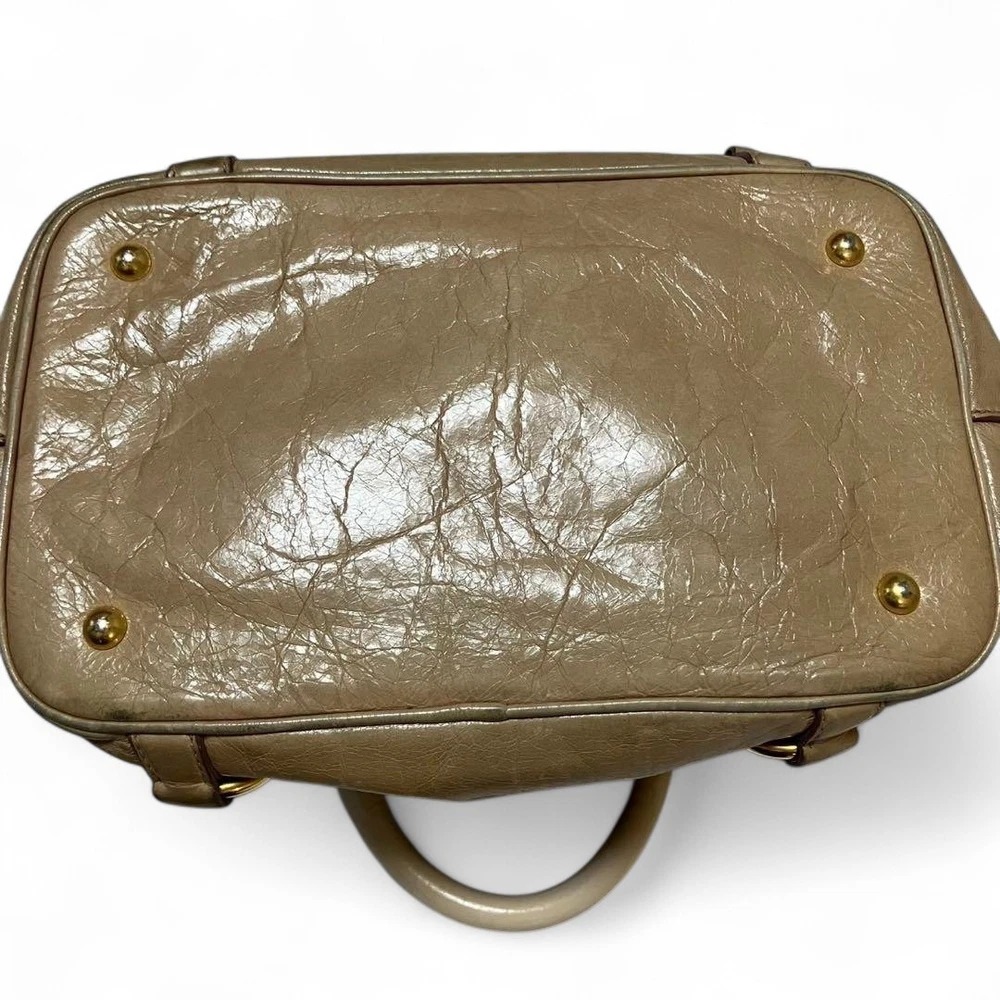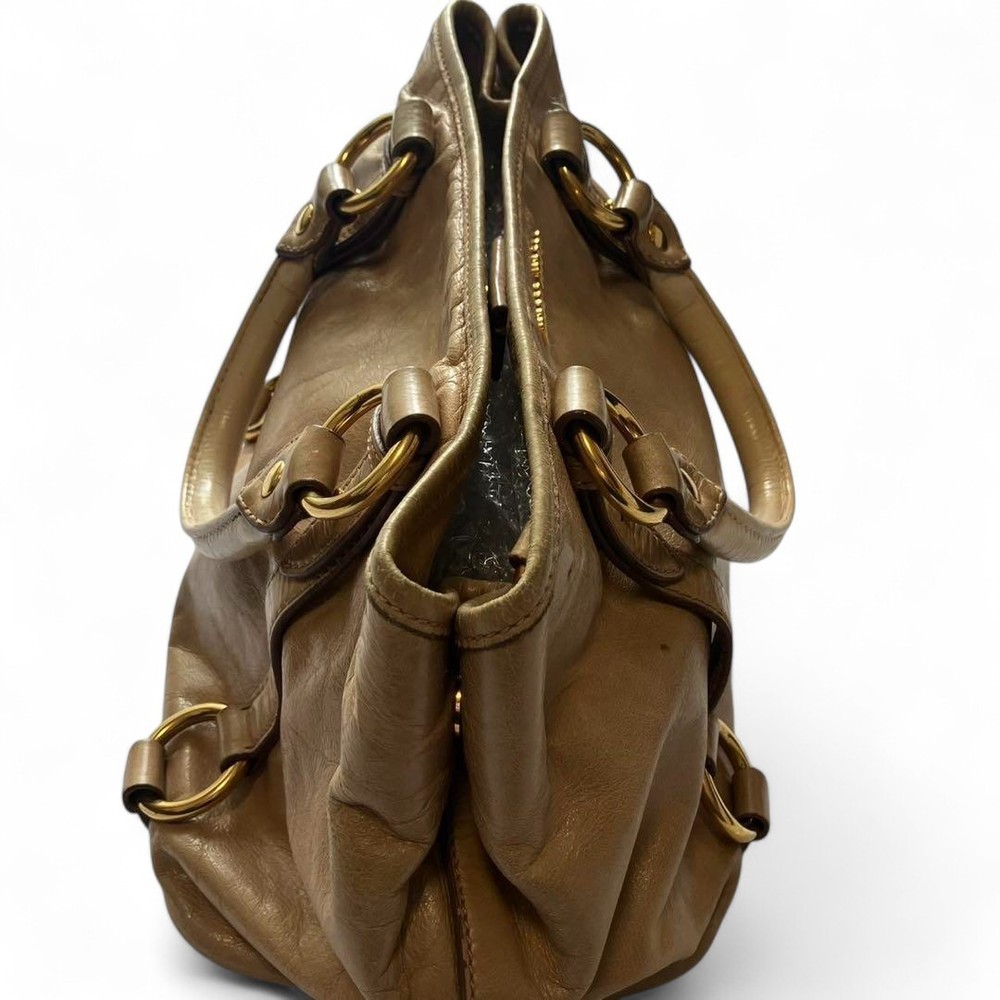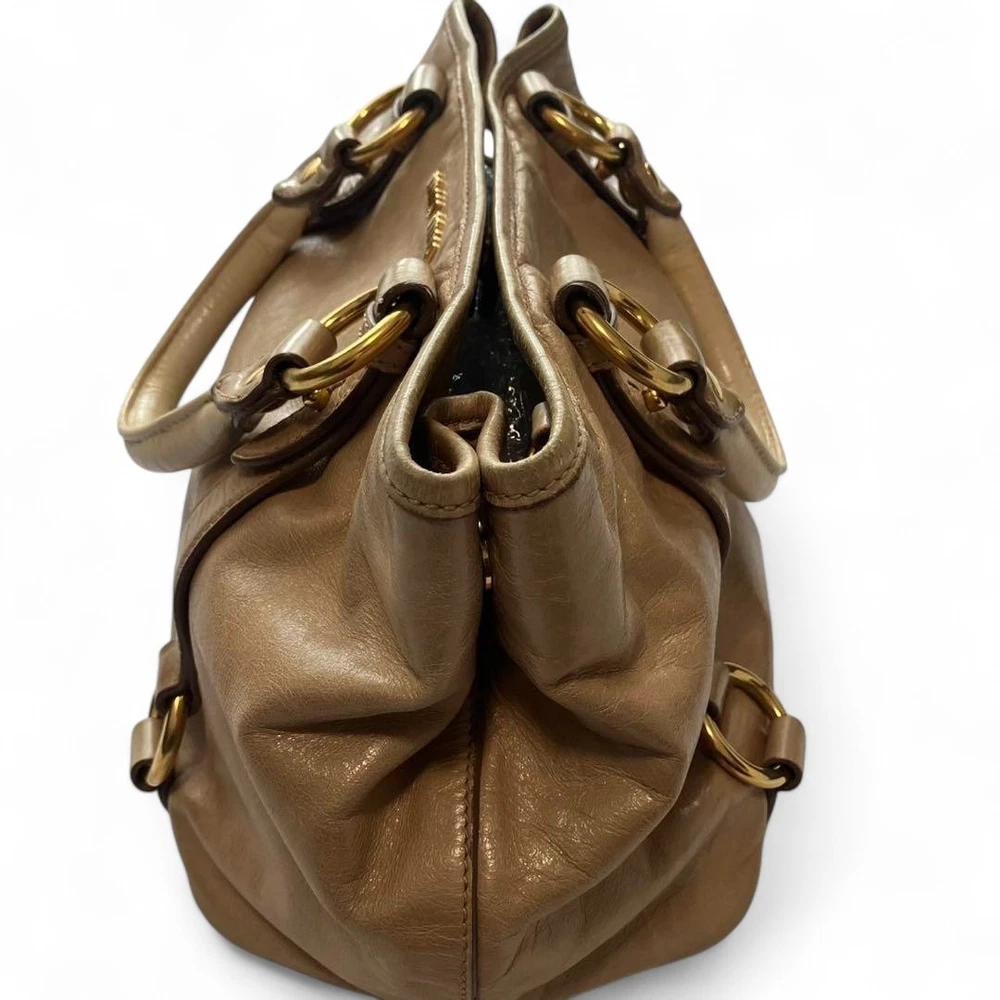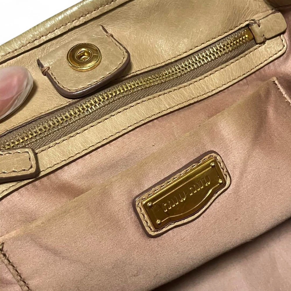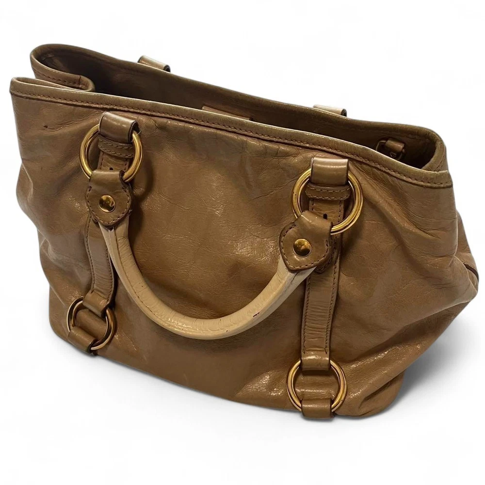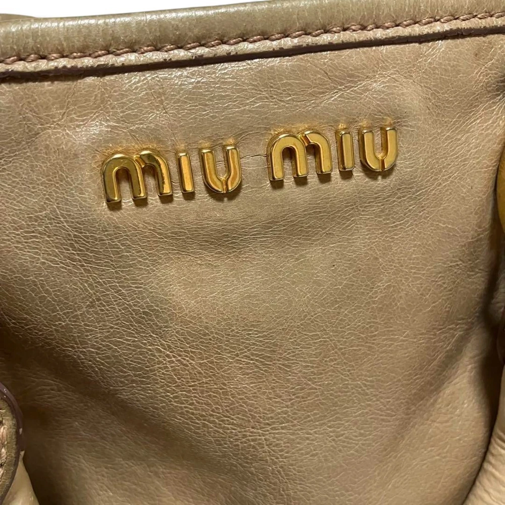 Miu Miu RN0685 Vitello Shine Handbag Pink Beige Leather Tote Bag Used Japan FS