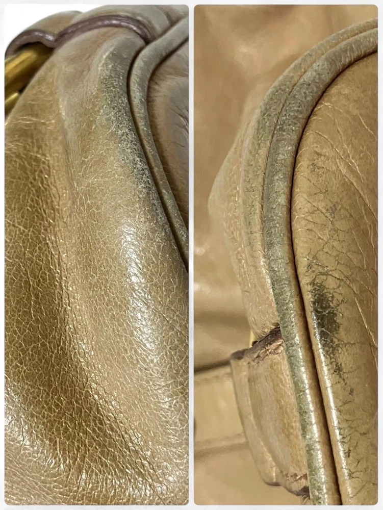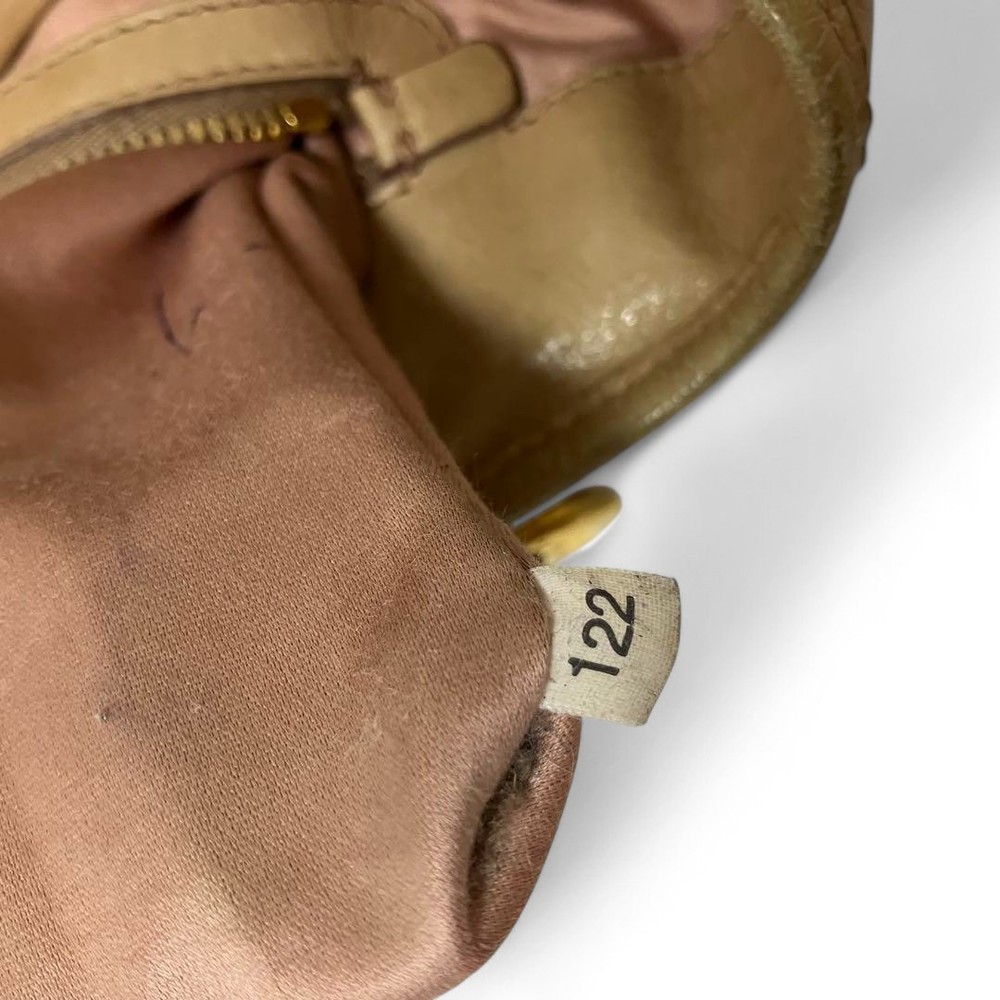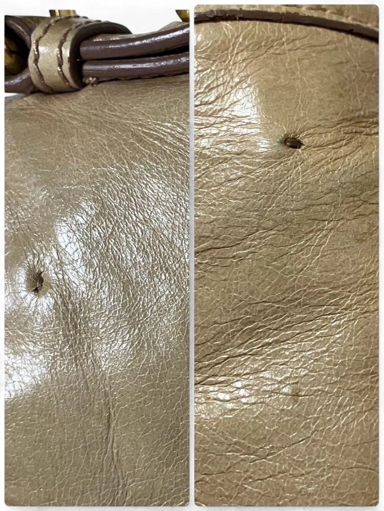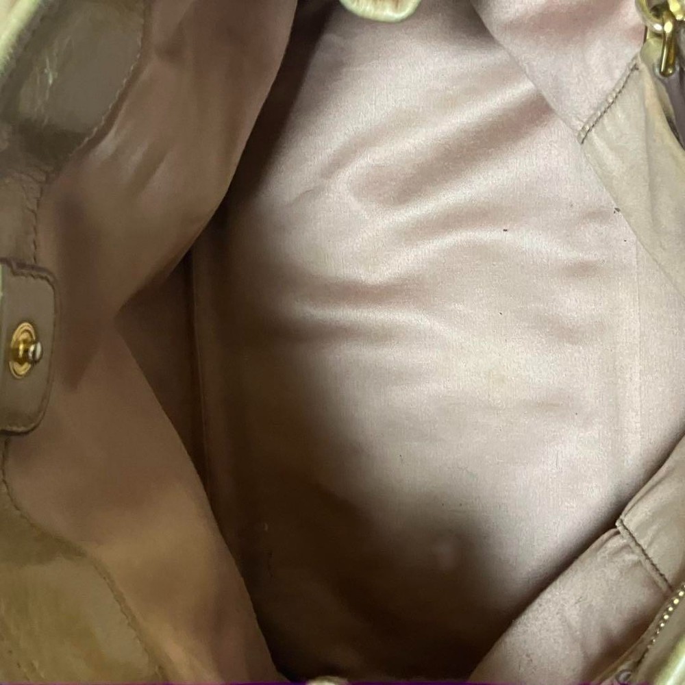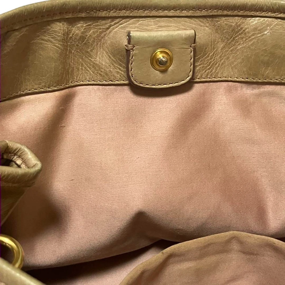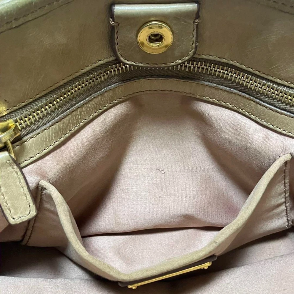 Miu Miu RN0685 Vitello Shine Handbag Pink Beige Leather Tote Bag Used Japan FS