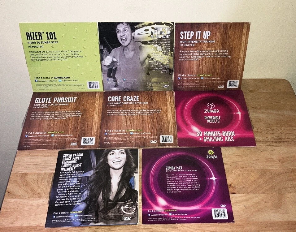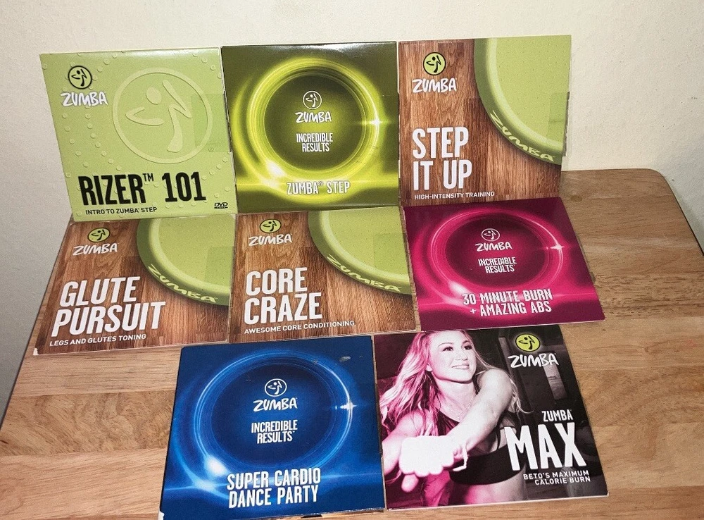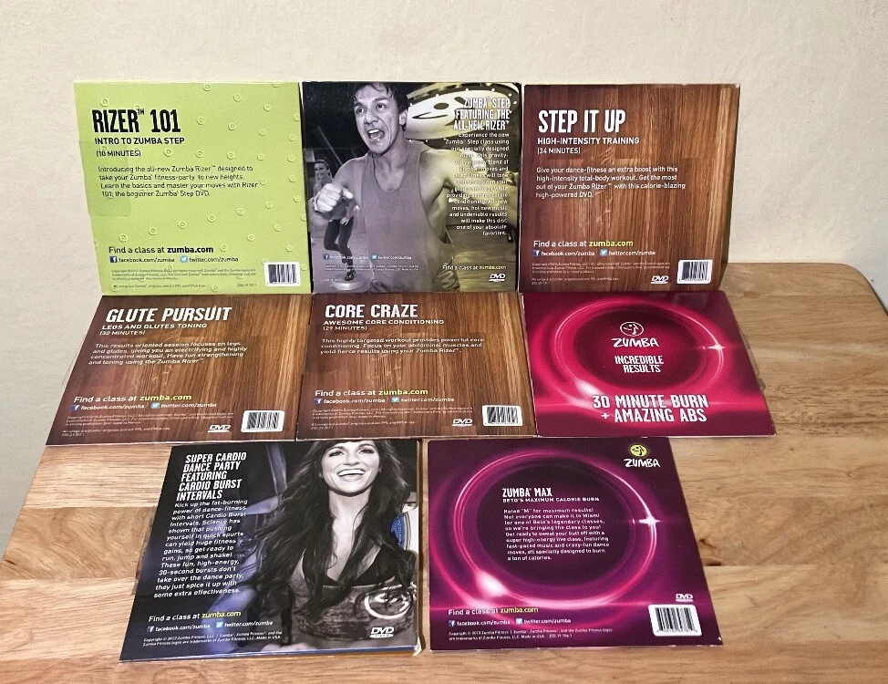 Lot of 8 various Zumba exercise DVDs Very good preowned condition Refer to photos for all dvd titles