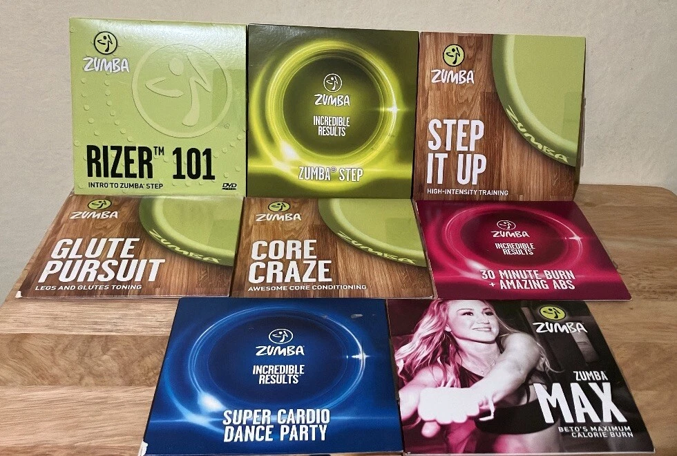 Mixed Lot of 8 ZUMBA Exercise DVDs Max, Step, Cardio Dance Party, Abs, Core, Etc
