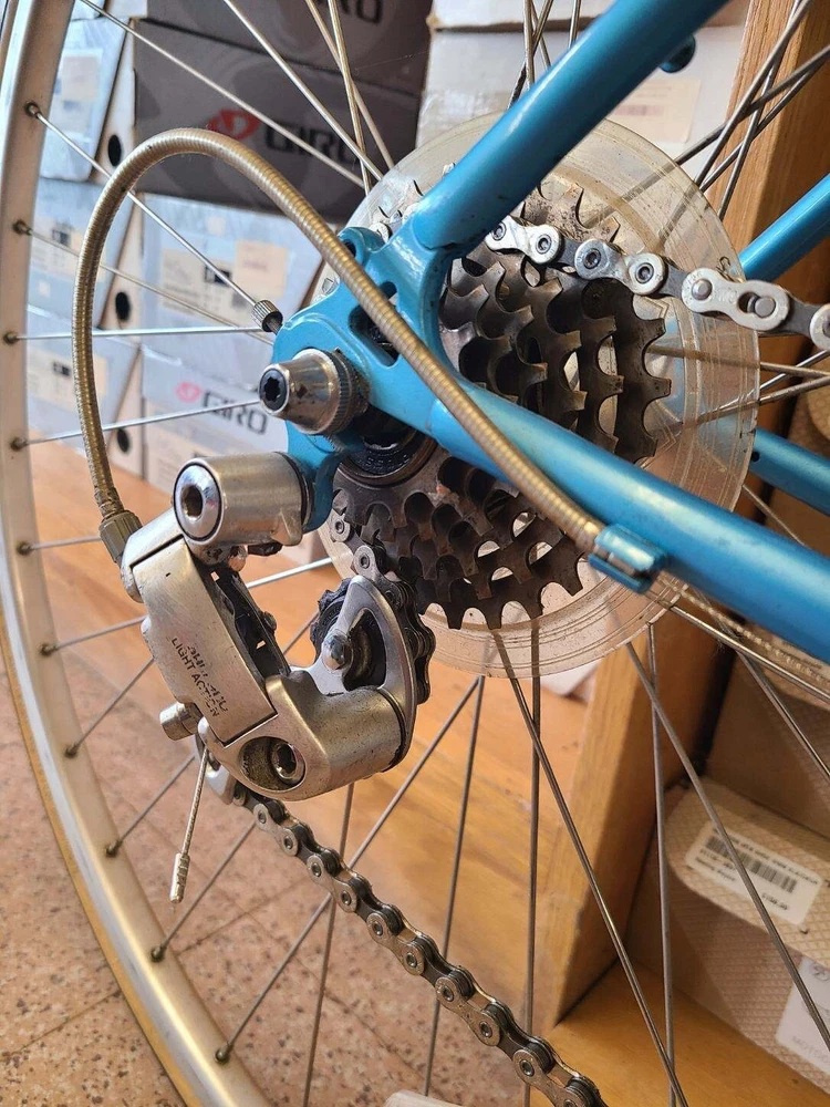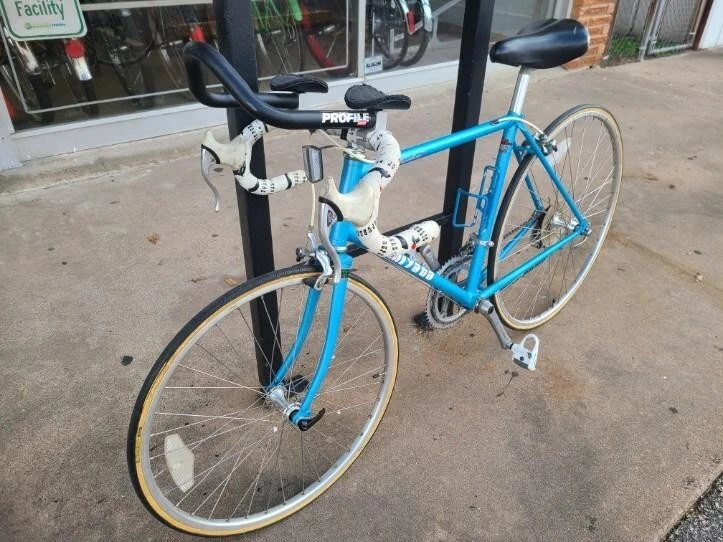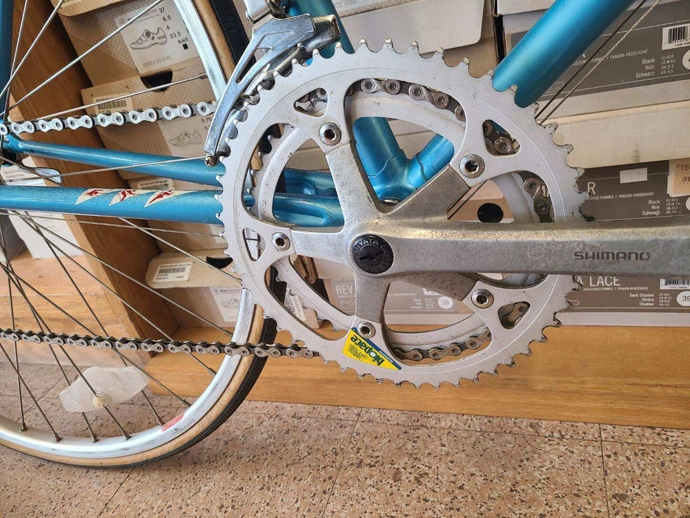 This Miyata 512 road bike is a great choice for any cycling enthusiast. With a frame size of 46 cm, it's perfect for riders looking for a comfortable and stable ride. The bike features a Biopace 24 front and 700 rear, providing excellent handling and performance. The blue color adds a touch of style to the design.The bike is made from high-quality Chromoly material, ensuring durability and longevity. The Aerobar handlebar type and rear suspension type make this bike perfect for road riding. Whether you're a seasoned cyclist or just starting out, the Miyata 512 is a great choice for anyone looking for a high-performance road bike. Made in Japan. Excellent condition