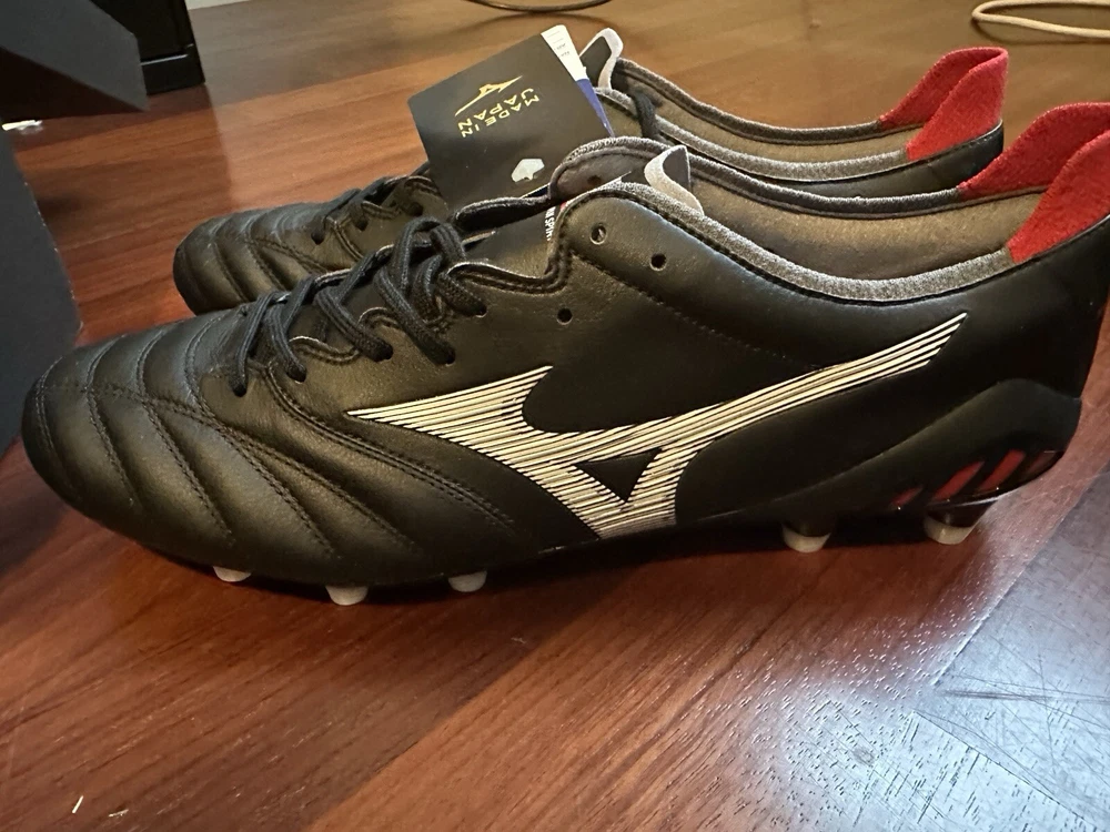Elevate your soccer or football game with these Mizuno Morelia Neo3 III Beta P1GA219003 soccer cleats. Made in Japan, these cleats are perfect for any soccer player looking for a reliable and high-quality pair of shoes. With a sleek black design, these cleats are sure to match any soccer uniform or style. The cleats are specifically designed for soccer players and feature a comfortable fit and excellent traction. The Mizuno brand is known for its high-quality sports equipment, and these cleats are no exception. Whether you're playing on a team or just practicing on your own, these cleats will help you perform at your best.