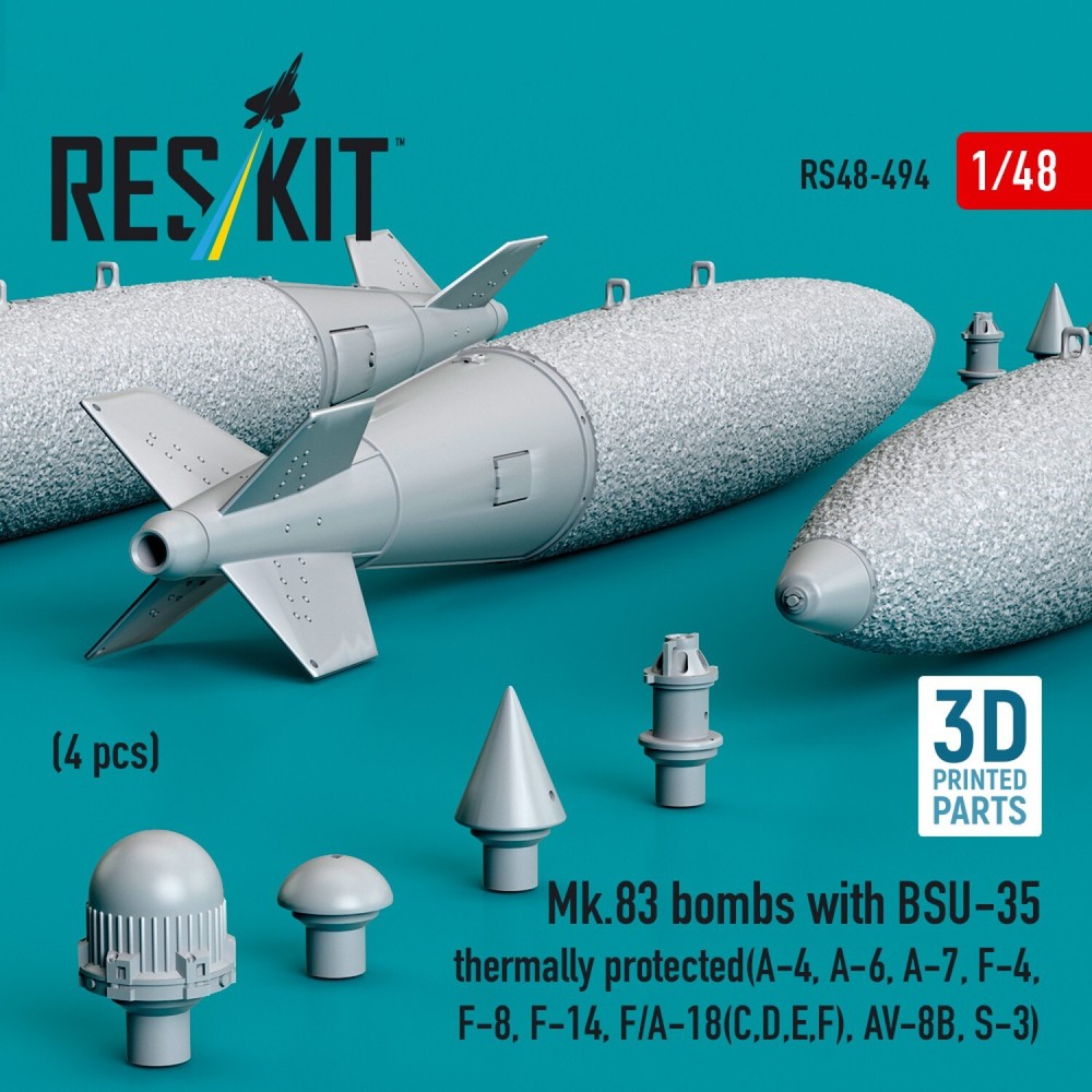 Mk.83 bombs with BSU-35 thermally protected (4 pcs) (A-4, A-6, A-7, F-4, F-8, F-14, F/A-18(C,D,E,F), AV-8B, S-3) Scale 1:48 ResKit RS48-0494 for Aircraft Model Kits Enhance Your Scale Models with ResKit | High-Quality Resin & 3D-Printed Accessories RESKIT - Accessories for Scale Plastic Kits Upgrade your scale model collection with high-quality resin parts from ResKit. Our Ukrainian-made parts are meticulously crafted to provide the most accurate and detailed representation of original components. Whether you're building aircraft, helicopters, military vehicles, or figures, ResKit has the perfect parts to enhance your project. Scale: 1:48 Manufacturer: RESKIT (Accessories for Scale Plastic Kits) Model (SKU): RS48-0494 Country/Region of Manufacture: Ukraine Condition: New in Box Product specifications Material: Resin (3D Printed) Features: Kit Kit description: Unpainted, Unassembled, Kit do not contain paints and glue Category: Resin & 3D accessories Type of equipment: for Aircraft Model Kits Type of product: Arms and weapons Recommended kit: Any Country of origin: USA Type aircraft or vehicle: Douglas A-4 Sky Hawk Grumman A-6 Intruder Grumman EA-6 Prowler A-7 Corsair II McDonnell Douglas F-4 Phantom II Vought F-8 Crusader Grumman F-14 Tomcat Boeing F/A-18 Hornet/Super Hornet Harrier Lockheed S-3 Viking ResKit is a Ukrainian manufacturer of high-quality resin parts and accessories for scale models . The products are distinguished by a high level of detail and accuracy, which allows modelers to create the most realistic models of military equipment, aviation and other objects. Key Features: Premium Quality: Our resin parts are made with the finest materials and precision engineering. Extreme Detail: Experience unparalleled detail and realism in your models. Wide Range: Choose from a vast selection of parts for various scales and subjects. Easy to Assemble: Our parts are designed for easy integration into your existing model kits. Superior quality! ResKit parts allow you to create a model with incredible detail. ---------------------------- >>> Visit our eBay store! <<< You will find everything you need at great prices. Scale model accessories are a wide range of parts, spares, and components that can help you make your model even more realistic and detailed. In our catalog, you will find everything you need to assemble and repair model cars, airplanes, ships, tanks, and weapons. Our accessories are made from high-quality materials and meet all standards. We offer a wide range of models and sizes so you can find what you need. Buy scale model accessories in our store and make your model even more unique! --------------------- ๐ About Us ๐๏ธ Welcome to our store, where we guarantee that every product is 100% brand new . By working directly with manufacturers , weโre able to provide you with competitive prices and high-quality items you can trust. ๐ฌ Have any questions or need assistance? Donโt hesitate to get in touch โ weโre always here to support you! โ๏ธ Your shopping experience with us is seamless, safe, and stress-free. ๐ณ Payment ๐ต Making payments is simple and secure with any method supported by eBay . ๐ก๏ธ Your payment is fully protected under eBayโs Buyer Protection program , ensuring a secure and worry-free transaction. ๐ Shipping โ๏ธ We use trusted airmail services for shipping, with your order delivered through your local postal service . ๐ฆ All orders include a tracking number , so you can monitor your shipment every step of the way. Shipping from Ukraine Delivery time : Estimated to be 10โ30 days Handling time : 1โ5 business days ๐ Shipping Discount ๐ฐ Enjoy combined shipping discounts when you buy more than one item! Get 50% off shipping costs for each additional product, with the discount applied to the lowest shipping rate. ๐ง Just request an invoice before completing your payment , and weโll send you an updated total reflecting the discount. ๐ Returns ๐ Not satisfied with your purchase? We offer easy and hassle-free returns . โ We provide free returns , and your original shipping cost will be fully refunded as well. ๐ฏ A full refund will be issued once we receive the returned item in its original condition.