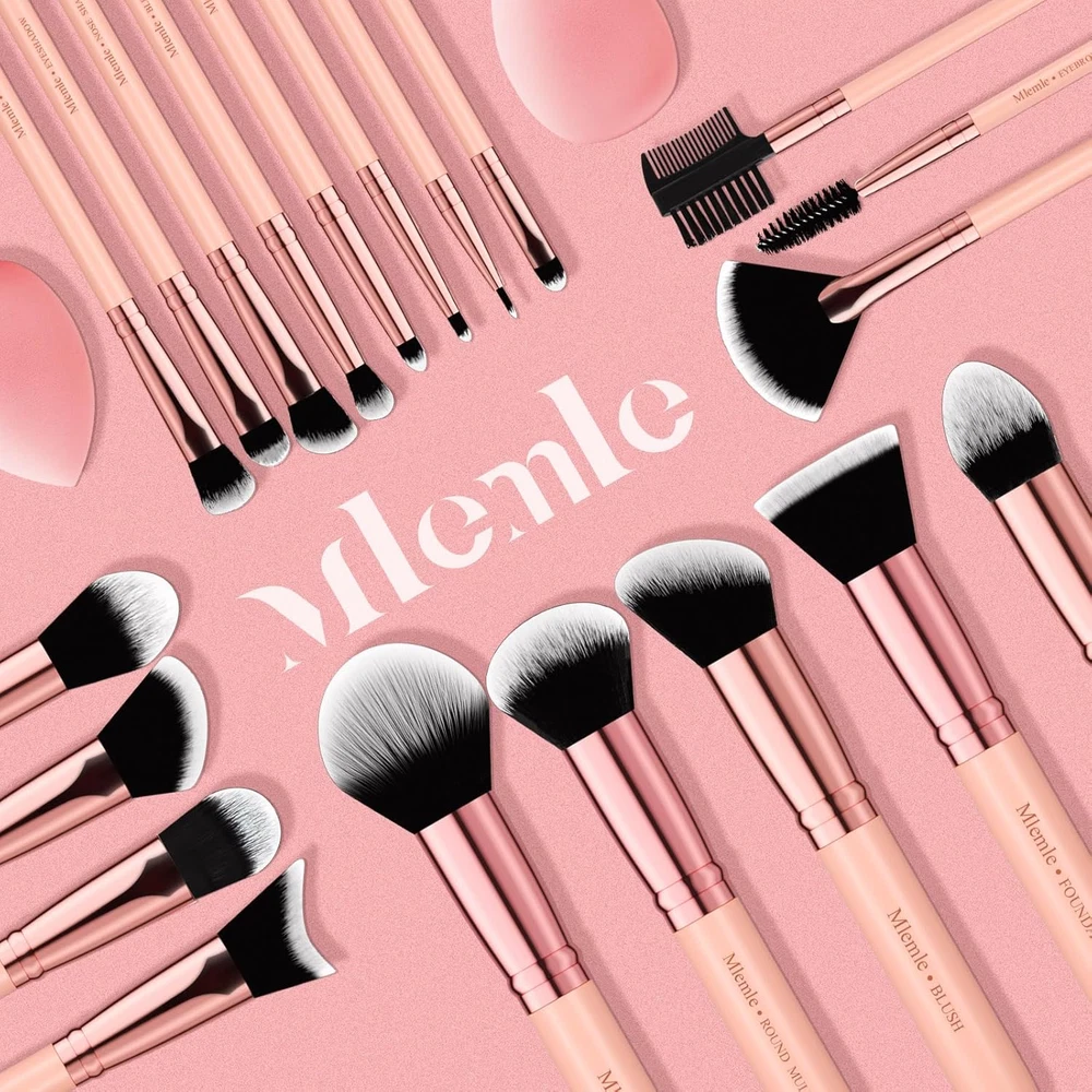 Care Instructions: Avoid wetting the wooden handle. Spot-clean bristles only. Professional Makeup Brushes by Mlemle: This set includes 20 brushes for various makeup applications such as Eye Shadow, Crease Shadow, Concealer, Blush, Foundation, Pressed or Loose Powders, Highlighter, and Eyebrows. It is perfect for applying, blending, and shading products, making it easy and convenient for daily makeup use. Non-Absorbent Makeup Sponge: Even seasoned makeup artists would find it challenging to create their best work solely with a brush set. Our latex-free blender sponge, featuring a skin-like texture with pore-like details, complements the makeup brush set perfectly, enabling even beginners to attain a sophisticated makeup appearance with ease. Beginner-friendly: We have labeled the purpose of each makeup brush, so even if you are a beginner, you can clearly understand their uses. Of course, the use of makeup brushes is not limited and can be flexible and varied. Vegan & Cruelty-Free Bristles: The bristles are crafted from high-quality synthetic fiber, specifically soft and silky nylon, ensuring durability for extended use. The makeup brushes are finely crafted and dense, making them suitable for even the most sensitive skin. Their excellent powder-holding capacity makes them an ideal tool for achieving a flawless look. Beautiful packaging suitable for gift-giving: Our product uses attractive and sturdy materials, making it an excellent choice as a gift. It is perfect for Christmas, Mother's Day, Halloween, Valentine's Day, Women's Day, or any special celebration. With a sharp focus on users' makeup requirements, Mlemle has crafted these brushes not only for durability but also to accommodate a wide range of makeup needs through their varied shapes.