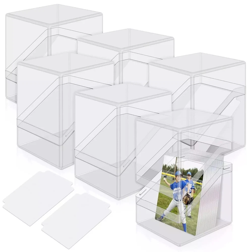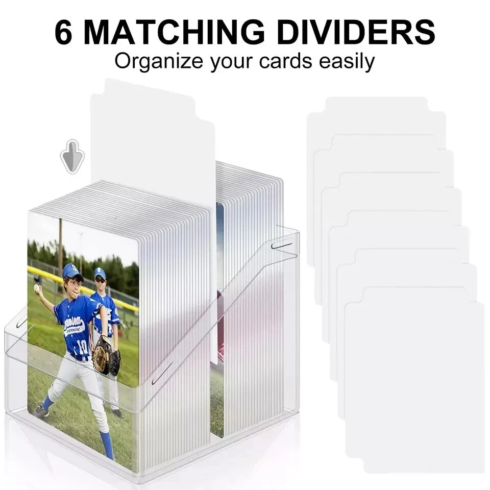 【Great Value-6 Pack Card Deck Cases】You will receive 6 card clear deck cases,enough quantity meet your cards collect requirement.The size of the trading card storage box is 2.8 x 3x 4 inches, which large enough to store 100+ standard size trading cards. 【6 Dividers-Organizing Your Cards】Each card deck case matching 1 divider,you will receive 6 Dividers in total,perfect for you to classify your all kinds of cards,keep your room clean.Therefore,you can find your cards easily rather than spend much time finding them, you will save the time to do other things. 【Super Protection for Your Cards-Sturdy Acrylic Quality】Our card deck case are made of high-quality acrylic material,water proof and dust proof ,effectively protect your card from bending, fading and scratching.You can throw it in a backpack and all your cards will still keep in amazing condition.That’s to say,your cards will get strong protection.It’s a good choice for the cards collector. 【One Size to Fit All】The size of the card storage box is perfect,light weight, easy to open, ergonomic and more than enough room for 100 sleeved cards and some tokens.Fit for standard card in various brands, trading card, baseball card, sports card and more. Designed for 100 double-sleeved or 120 single-sleeved standard sized cards. 【Easy to Use】Mlikero Card deck box designed by symmetrical structure, cover has the same size and shape as the bottom section, which can be used as a second card holder when you open it, providing both secure closure by tilting the cover and easy opening.You can put it on the shelf as a collection.