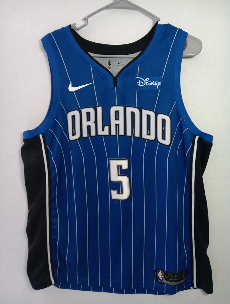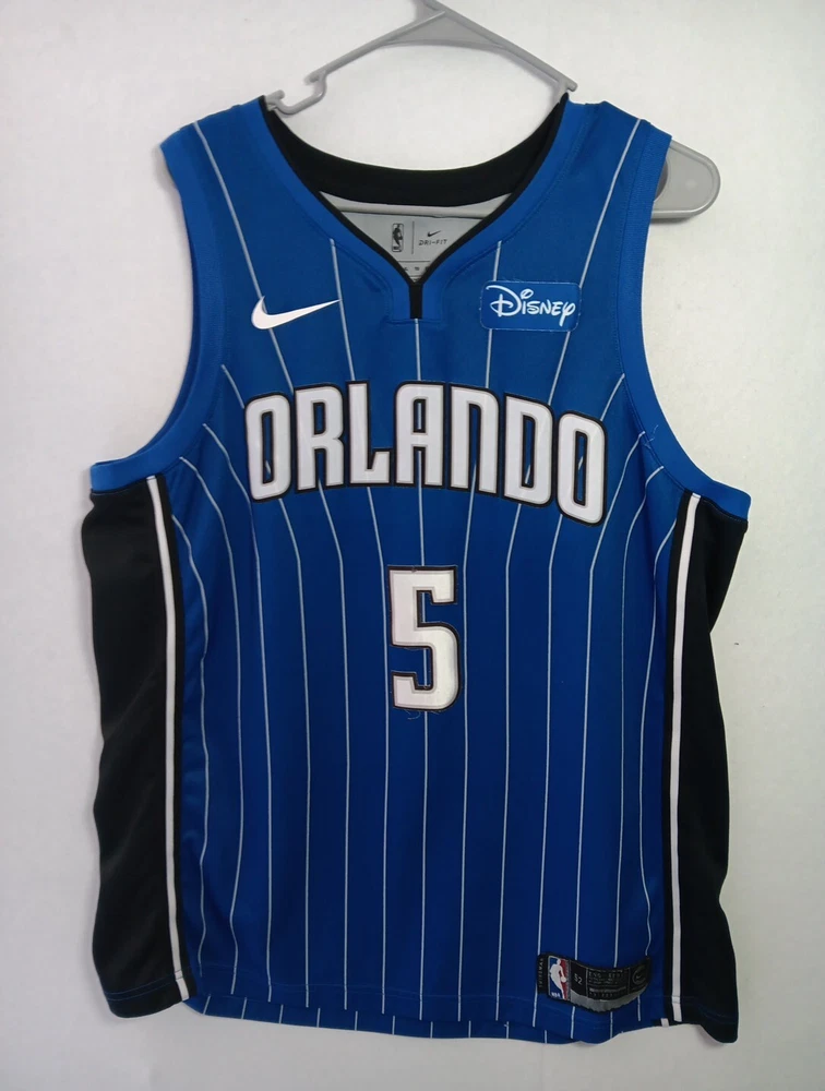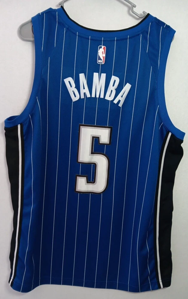 Mo Bamba Orlando Magic Nike Connect NBA Swingman Jersey #5 Disney Patch 52 XXL The product is a Nike Connect NBA Swingman Jersey featuring player Mohamed Bamba's number 5 for the Orlando Magic team. The jersey is officially licensed by the National Basketball Association (NBA) and includes a Disney Patch. It is a size 52 (XXL) jersey in blue color, designed for men. This item is ideal for fans of Mohamed Bamba and the Orlando Magic looking to show their support during the NBA regular season games.