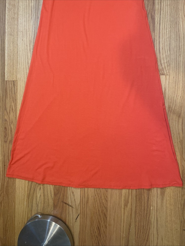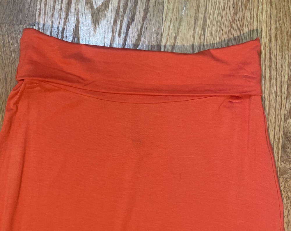 Add a pop of color to your wardrobe with this beautiful orange maxi skirt from the Moa Collection. Lightweight and comfortable, this skirt is perfect for almost any occasion, whether you're traveling, going casual, or even for business. This skirt is long and can be worn high rise or low rise depending on your preference. This has never been worn.