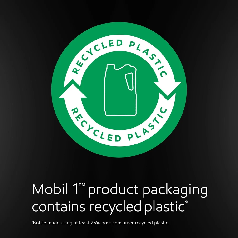 Mobil 1 advanced full synthetic motor oil 5W-20 helps to extend engine life for vehicles of all ages. Designed to deliver outstanding engine protection from the five factors that can damage engines over time and protect critical engine parts for up to 10,000 miles between oil changes*. Its uniform synthetic oil molecules reduce friction, helping to prevent deposits and sludge buildup. Mobil 1 helps to keep your engine running at lower temperatures.** This technologically advanced motor oil is proven to cool engine temperatures by over 10%.*** Mobil 1 advanced full synthetic motor oil 5W-20 also helps control oxidation to prevent oil breakdown and is recommended by ExxonMobil for all types of modern vehicles, including high-performance turbo-charged, and supercharged gasoline and diesel multi-valve fuel-injected engines found in passenger cars, SUVs, light vans, and light trucks. Mobil 1 is America’s leading synthetic motor oil brand at retail†, recommended by car builders and experienced mechanics, and is the Official Motor Oil of NASCAR®. (*Protects for up to 10,000 miles or 1 year, whichever comes first. To learn more about the Mobil 1 Limited Warranty, visit Mobil.US. **Compared to conventional oil. ***Based on proprietary engine testing–results may vary. ****Source: The NPD Group/Retail Tracking Service/Dollar Sales/PCMO Full Synthetic/52 weeks ending September 30, 2023.) Mobil 1 advanced full-synthetic motor oil 5W-20 utilizes Mobil 1’s signature Triple Action Formula to deliver outstanding engine performance, protection, and cleanliness. Helps protect critical engine parts for up to 10,000 miles between oil changes,* controlling oxidation to prevent oil breakdown and maintaining excellent viscosity Meets ILSAC GF-6 standards to help provide low-speed pre-ignition (LSPI) and timing chain wear protection while keeping your engine clean and helping to improve your fuel economy Mobil 1 is specially formulated to help remove sludge and lower engine temperatures Provides excellent internal engine heat protection (up to 500 degrees F) and low temperature protection (to -30 degrees F)