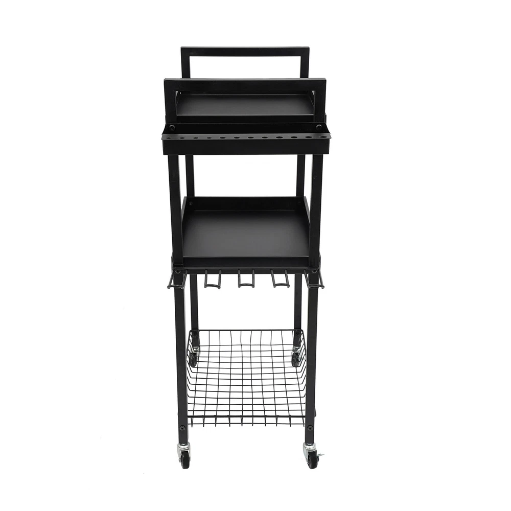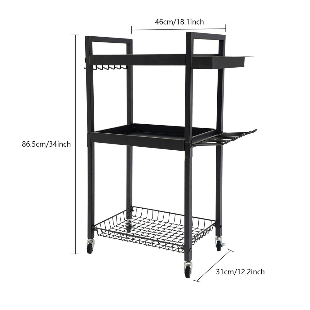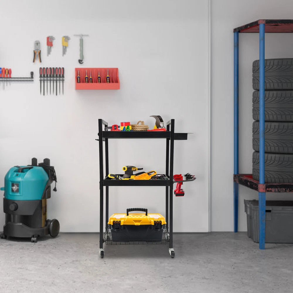 Power Tool Organizer Tool Organizer with Wheels Power Tool Storage Cart Description This power tool storage cart with three levels of storage is ideal for keeping your tools organized and in order. It is made of sturdy and durable materials with a clever and reasonable design that can effectively categorize and store various power tools, which not only saves space but also facilitates quick access. Whether it's for home DIY or professional repairs, it will be a great choice to improve your work efficiency and keep your space tidy. Key Features Sturdy and Durable: The premium iron with the baking paint process gives the product high hardness and good rust resistance and can protect the product from corrosion, fade, and deformation, ensuring a long service life. Strong Structure: The thick panels, sturdy tubes, and strong screw connections ensure a high load-bearing capacity(220.46-440.92 lbs) that allows the product to hold your tools with ease. Versatile Storage: This product is equipped with a screwdriver storage area, a hook area and a rig storage area, which can hold a total of 16 screwdrivers, 7 wrenches and 4 rigs, providing you with a variety of storage options. Large Capacity: The product comes with three compartments that allow you to organize your tools, cleaners, tool boxes, and other miscellaneous items separately. In addition, hooks on the edges of the product are designed to hang your power tools for easy access, greatly improving your work efficiency. Easy to Move and Stop: The 4 casters allow you to easily move it and the loaded tools from one place to another with ease. In addition, two of these casters are equipped with brakes that allow you to stop it firmly at places you wish. Clean with Ease: With a smooth surface and a simple structure, you can easily wipe it clean with a damp cloth. Good Appearance: Smooth lines, a simple shape, and an elegant black color allow this product to easily blend into all types of decor, making it a great addition to your space. Ideal Gift: With a large capacity, strong structure, and convenient movement design, it can be an ideal gift for your friends, families, and colleagues. Buy with Confidence: We stand behind all our guests and look forward to assisting you with your purchase. It is our pleasure to answer your confusion and questions. The end of the story between us is not "we sell and you buy". Details Opening Design: The open construction of this product allows for good ventilation to avoid dust, mold , and moisture buildup. Raised Edges: They can protect the tools stored on them from falling out when you move the product. Application The product is suitable for garages, workshops, warehouses, homes, stores, tool stores, sheds, etc. for storing drills, screwdrivers, screw boxes, saws, power supplies, tape measures, wrenches, vises, hammers, drills, charging cradles, toolboxes, goggles, noise-reducing earmuffs, and more. Specifications Color: Black Material: Iron Process: Baking Paint Mount Type: Free Standing Assembly Required: Yes Load Bearing Capacity: 100-200kg/220.46-440.92lbs Product Size: 46*31*86.5cm/18.1*12.2*34in Package Size: 42.7*32.5*11cm/16.81*12.8*4.33in Gross Weight: 6.3kg/13.89lbs Net Weight: 5.89kg/12.99lbs Package Included 1* Power Tool Storage Cart Other Needed Accessories Notes Please check the size carefully before ordering. This product does not include the various tools shown in the pictures. Please allow the slight color difference caused by the shooting light and 1-3cm error due to manual measurement, and make sure you do not mind before you order. Payment Delivery details Terms of sales About us Contact us Payment We accept ebay payment 。 Fees such as import duties, taxes are not included in the item price or shipping costs. These charges are the buyer's responsibility. Delivery details Shipping: 2-9 working days to: USA Terms of sales We maintain high standards of excellence and strive for hundred percent customer satisfaction. Feedback is very important to us. We hope that you contact us immediately before you give neutral or negative feedback, so that we can address your concerns. It is impossible to address issues if we do not know about them! About us Your satis faction is our ultimate goal. We work hard to earn your trust and future business. Our certified technicians have tested each item before shipping. The unit comes with 1 year limited warranty on all manufacturing defects. a) If you receive a defective item, you may return it or ask for a discount. Please contact us within 14 days after you receive the package. b) What you returned must be intact and in its original packaging as re? u. Customer is responsible for shipping costs of the returned item. c) We will cover the cost of shipping back t with the shipping rate indicated in the registration page. We will send you a new unit or refund the full payment you paid. Thank you. Contact us Business Hour Business Hour: Monday To Friday: 8:30 AM to 5:00 PM (Beijing China time) Due to time zones, our reply to your questions may not be immediately. But within above working time, we will reply your email within 24 hours. If it's non-workdays, please kindly be patient and wait till Monday. Please contact us with ebay message. Please feel free to contact us if you have any questions. Monday To Friday: 8:30 AM to 5:00 PM (Beijing China time) Due to time zones, our reply to your questions may not be immediately. But within above working time, we will reply your email within 24 hours. If it's non-workdays, please kindly be patient and wait till Monday. Please contact us with ebay message. Please feel free to contact us if you have any questions.