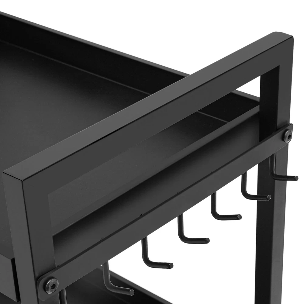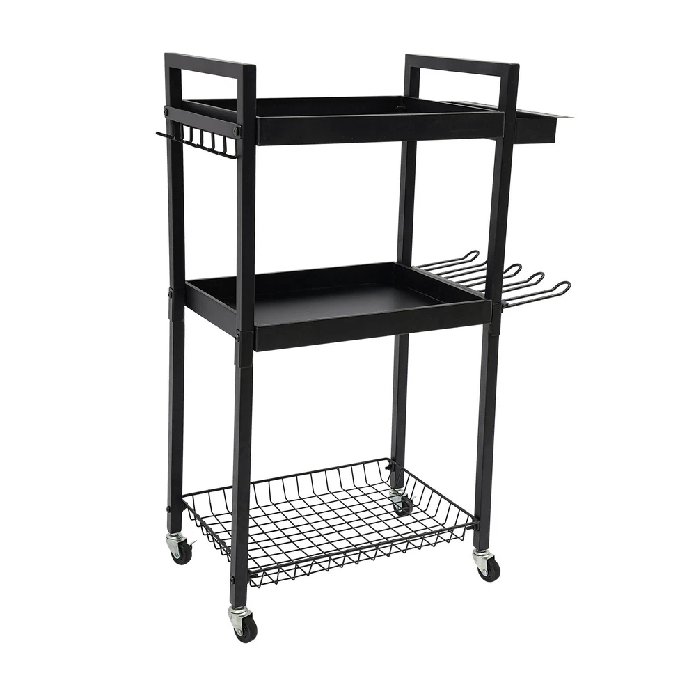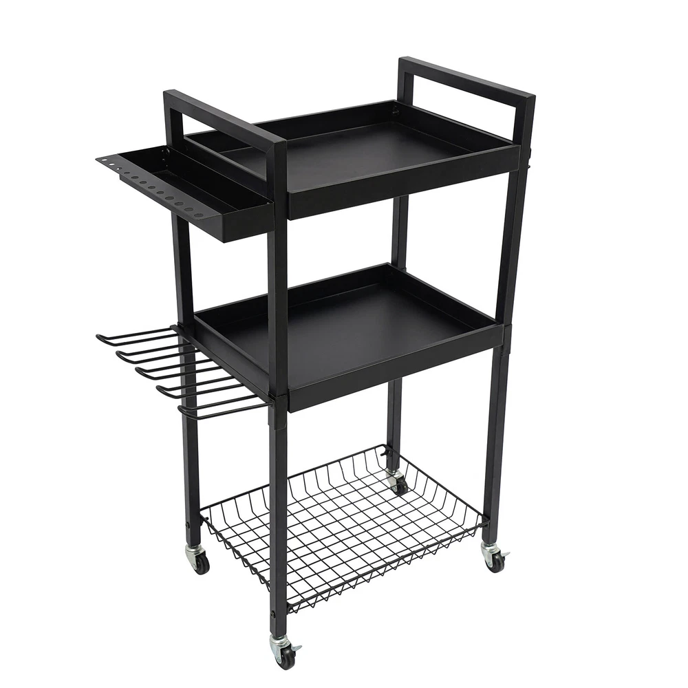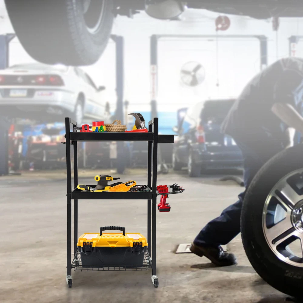 Power Tool Organizer Tool Organizer with Wheels Power Tool Storage Cart Description This power tool storage cart with three levels of storage is ideal for keeping your tools organized and in order. It is made of sturdy and durable materials with a clever and reasonable design that can effectively categorize and store various power tools, which not only saves space but also facilitates quick access. Whether it's for home DIY or professional repairs, it will be a great choice to improve your work efficiency and keep your space tidy. Key Features Sturdy and Durable: The premium iron with the baking paint process gives the product high hardness and good rust resistance and can protect the product from corrosion, fade, and deformation, ensuring a long service life. Strong Structure: The thick panels, sturdy tubes, and strong screw connections ensure a high load-bearing capacity(220.46-440.92 lbs) that allows the product to hold your tools with ease. Versatile Storage: This product is equipped with a screwdriver storage area, a hook area and a rig storage area, which can hold a total of 16 screwdrivers, 7 wrenches and 4 rigs, providing you with a variety of storage options. Large Capacity: The product comes with three compartments that allow you to organize your tools, cleaners, tool boxes, and other miscellaneous items separately. In addition, hooks on the edges of the product are designed to hang your power tools for easy access, greatly improving your work efficiency. Easy to Move and Stop: The 4 casters allow you to easily move it and the loaded tools from one place to another with ease. In addition, two of these casters are equipped with brakes that allow you to stop it firmly at places you wish. Clean with Ease: With a smooth surface and a simple structure, you can easily wipe it clean with a damp cloth. Good Appearance: Smooth lines, a simple shape, and an elegant black color allow this product to easily blend into all types of decor, making it a great addition to your space. Ideal Gift: With a large capacity, strong structure, and convenient movement design, it can be an ideal gift for your friends, families, and colleagues. Buy with Confidence: We stand behind all our guests and look forward to assisting you with your purchase. It is our pleasure to answer your confusion and questions. The end of the story between us is not "we sell and you buy". Details Opening Design: The open construction of this product allows for good ventilation to avoid dust, mold , and moisture buildup. Raised Edges: They can protect the tools stored on them from falling out when you move the product. Application The product is suitable for garages, workshops, warehouses, homes, stores, tool stores, sheds, etc. for storing drills, screwdrivers, screw boxes, saws, power supplies, tape measures, wrenches, vises, hammers, drills, charging cradles, toolboxes, goggles, noise-reducing earmuffs, and more. Specifications Color: Black Material: Iron Process: Baking Paint Mount Type: Free Standing Assembly Required: Yes Load Bearing Capacity: 100-200kg/220.46-440.92lbs Product Size: 46*31*86.5cm/18.1*12.2*34in Package Size: 42.7*32.5*11cm/16.81*12.8*4.33in Gross Weight: 6.3kg/13.89lbs Net Weight: 5.89kg/12.99lbs Package Included 1* Power Tool Storage Cart Other Needed Accessories Notes Please check the size carefully before ordering. This product does not include the various tools shown in the pictures. Please allow the slight color difference caused by the shooting light and 1-3cm error due to manual measurement, and make sure you do not mind before you order. Payment Delivery details Terms of sales About us Contact us Payment We accept ebay payment 。 Fees such as import duties, taxes are not included in the item price or shipping costs. These charges are the buyer's responsibility. Delivery details Shipping: 2-9 working days to: USA Terms of sales We maintain high standards of excellence and strive for hundred percent customer satisfaction. Feedback is very important to us. We hope that you contact us immediately before you give neutral or negative feedback, so that we can address your concerns. It is impossible to address issues if we do not know about them! About us Your satis faction is our ultimate goal. We work hard to earn your trust and future business. Our certified technicians have tested each item before shipping. The unit comes with 1 year limited warranty on all manufacturing defects. a) If you receive a defective item, you may return it or ask for a discount. Please contact us within 14 days after you receive the package. b) What you returned must be intact and in its original packaging as re? u. Customer is responsible for shipping costs of the returned item. c) We will cover the cost of shipping back t with the shipping rate indicated in the registration page. We will send you a new unit or refund the full payment you paid. Thank you. Contact us Business Hour Business Hour: Monday To Friday: 8:30 AM to 5:00 PM (Beijing China time) Due to time zones, our reply to your questions may not be immediately. But within above working time, we will reply your email within 24 hours. If it's non-workdays, please kindly be patient and wait till Monday. Please contact us with ebay message. Please feel free to contact us if you have any questions. Monday To Friday: 8:30 AM to 5:00 PM (Beijing China time) Due to time zones, our reply to your questions may not be immediately. But within above working time, we will reply your email within 24 hours. If it's non-workdays, please kindly be patient and wait till Monday. Please contact us with ebay message. Please feel free to contact us if you have any questions.