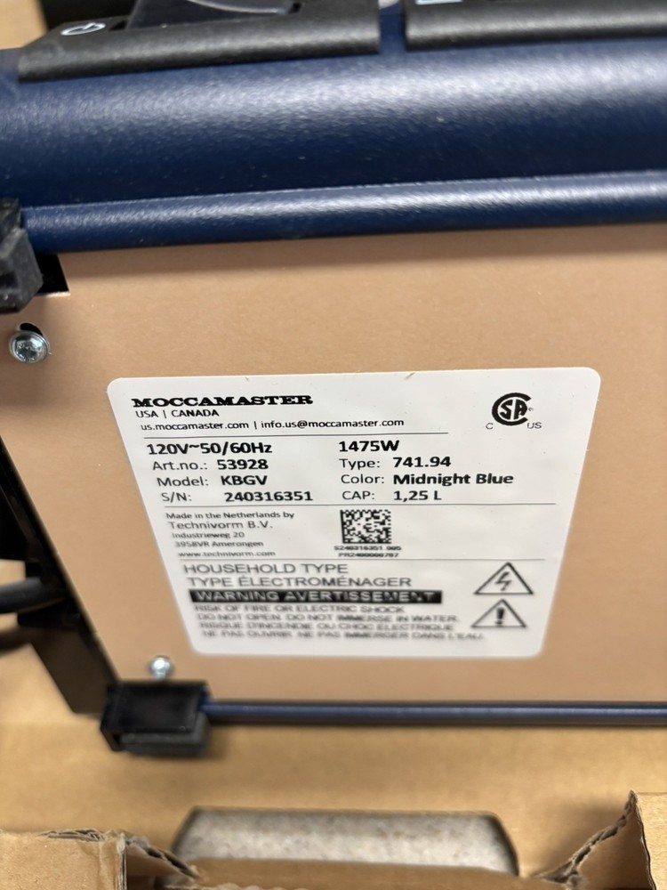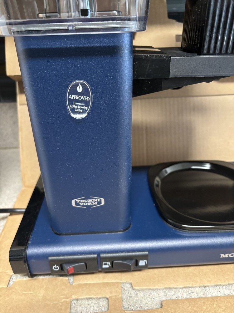 Brand Technivorm Moccamaster Capacity 40 Fluid Ounces Color Midnight Blue Product Dimensions 6.5"D x 12.75"W x 14"H Special Feature Auto Shut-Off Coffee Maker Type Drip Coffee Machine Perfect Coffee Every Time: This pump-free coffee maker heats water to the correct temperature for coffee extraction Brew-Volume Selector switch for brewing half or full carafes Easy to Use: The Moccamaster brews a full 40 oz pot of coffee in 4-6 minutes using one switch Open box item - All parts still in original packaging and in original box