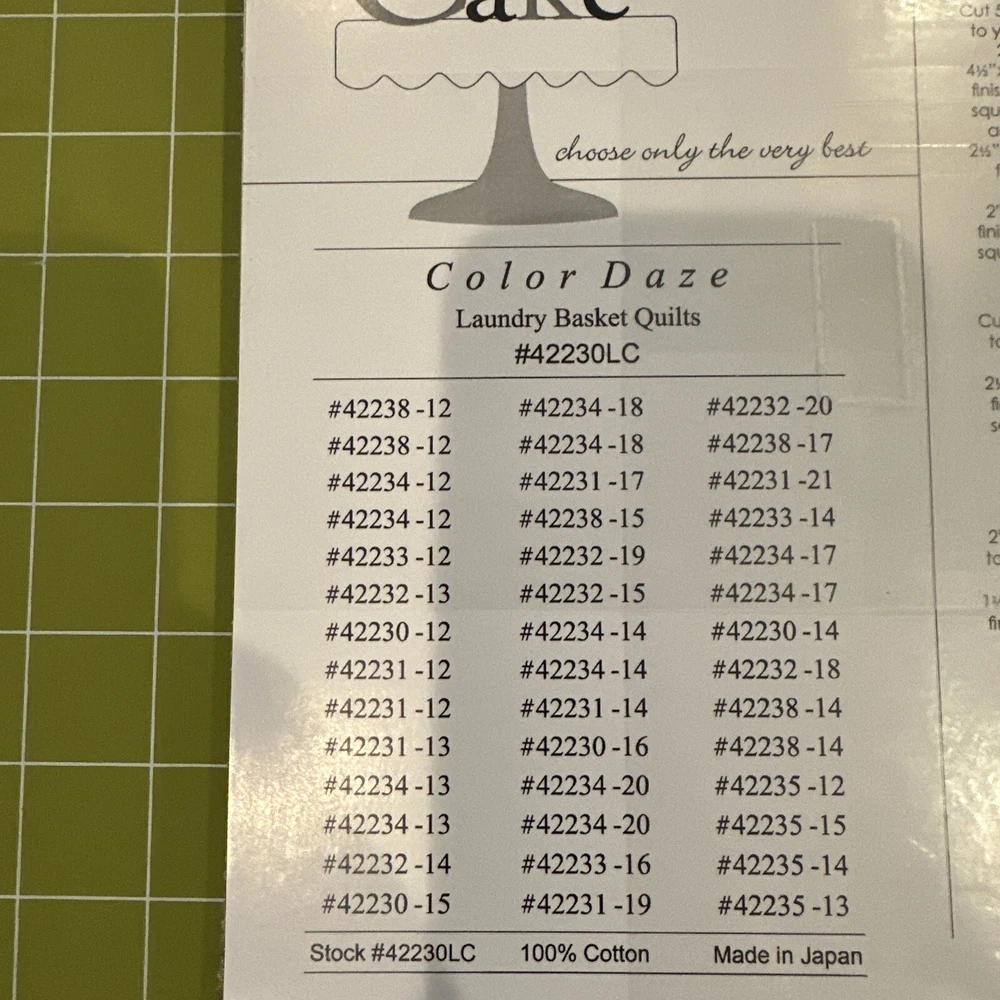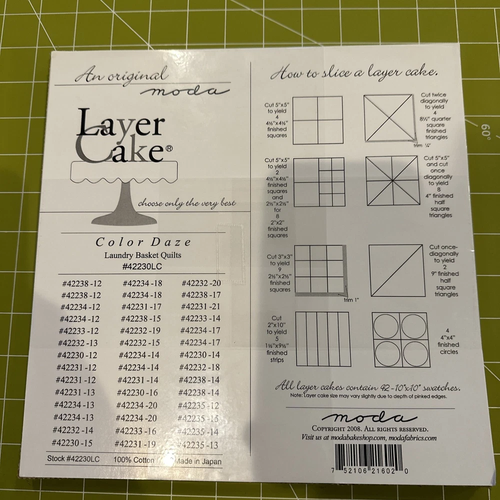This Moda Fabric Color Daze by Laundry Basket Quilts is a 10-inch square layer cake that will add a pop of color to your quilting projects. Made of high-quality cotton fabric, this piece features a multicolor design and is perfect for creating unique and eye-catching quilts. The quilted texture adds depth and dimension to your work, making it a great addition to any quilting collection. Whether you are a seasoned quilter or just starting out, this fabric is sure to inspire your creativity.