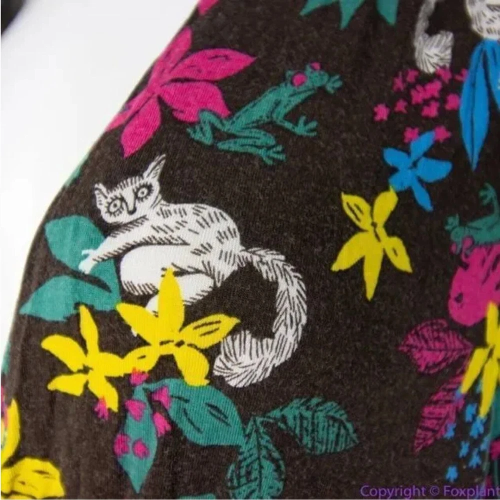Modcloth Jungle Print Knit Dress with White Cat Blue Bird Ring-Tailed Lemur in XL
