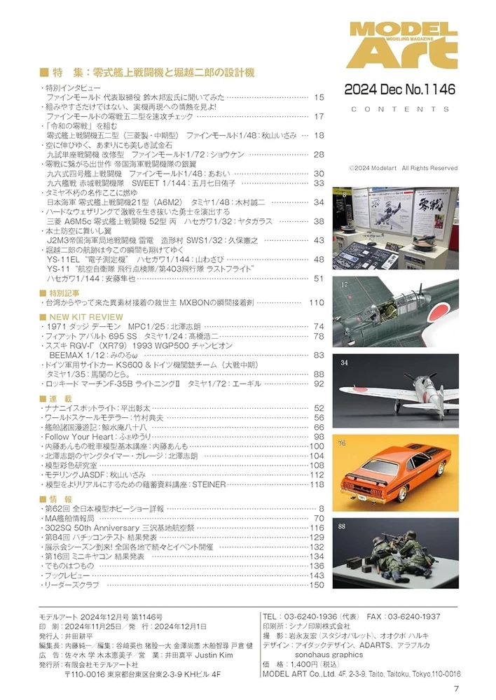Model Art Dec 2024 magazine Figure Military Plastic Zero-sen Raiden Book
