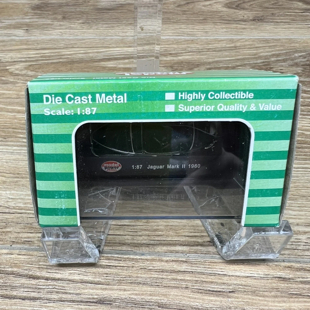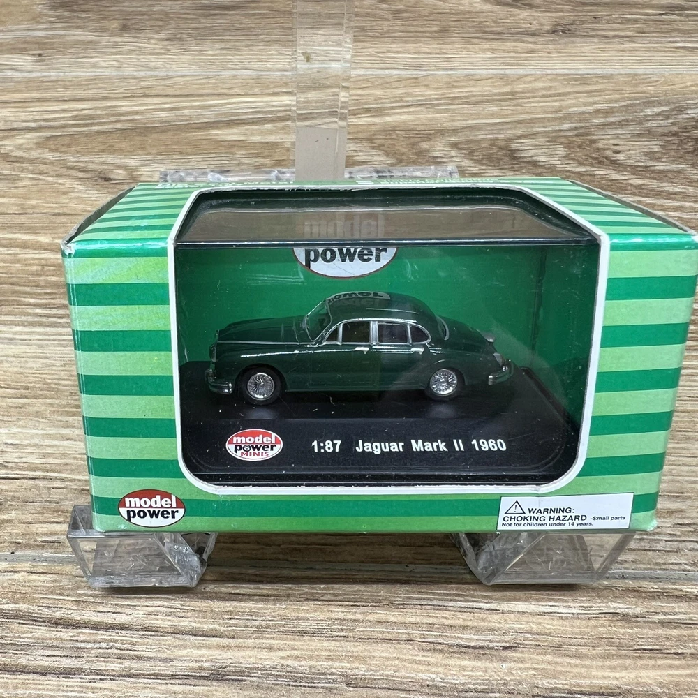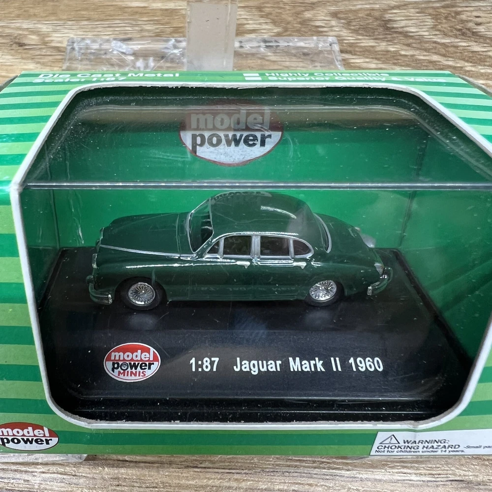 The product is a Model Power Minis diecast replica of a 1960 Jaguar Mark II in 1:87 scale. This detailed miniature car belongs to the Jaguar vehicle make and is part of the Minis collection by Model Power. The model number for this particular item is 19440, capturing the classic design of the iconic Jaguar Mark II in a smaller scale for collectors or enthusiasts of diecast vehicles.