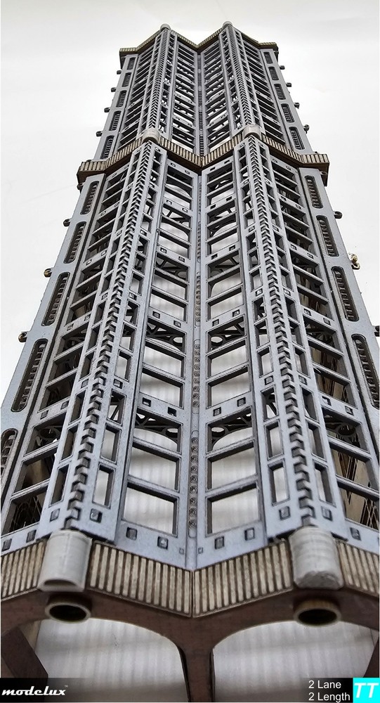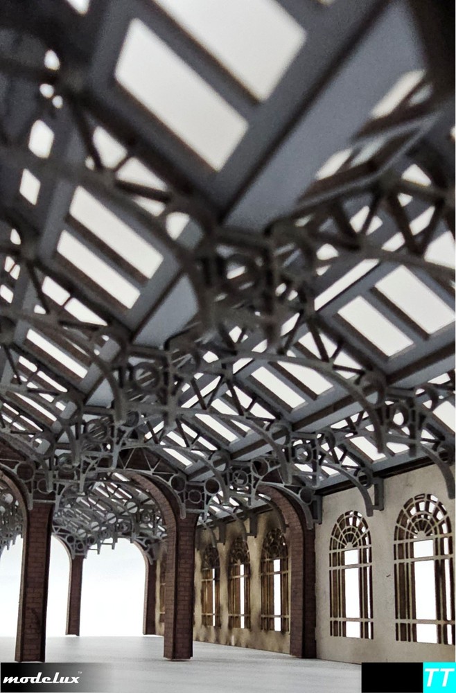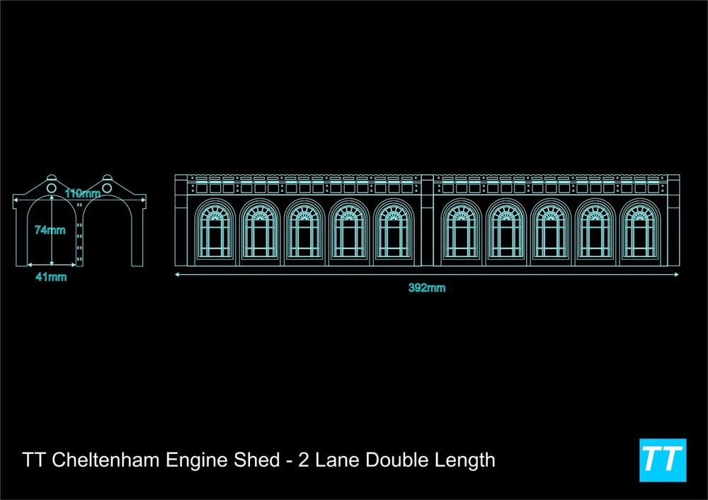 TT Gauge 1:120 Modelux 'Cheltenham' 2 lane Engine Shed Kit Dimensions on 2nd photo Fully coloured. The brick is litho printed and laminated onto 1.3mm multicore board. Every component is fully coloured The roof is grey and features structural trusses. The windows are not glazed - there is a glazing pack available in a separate listing The downspouts and downspout pans are NOT included, but are available separately The gables feature Modedux 'Invisiseam' meaning near invisible joins between the elevations. The walls are made 4 layers - acetate windows, then the window frame sheet, the window reveal brickwork, and finally the piers .... The whole assembly is robust and very realistic. This kit is designed so that another module can join in series, if desired, to extend the length ( as long as you require ). See Data sheet for dimensions ( photo on listing) See other listings for more Modelux at TT 1:120 YT Video for assembly - search Cheltenham Engine Tutorial Flat pack. PVA required for assembly