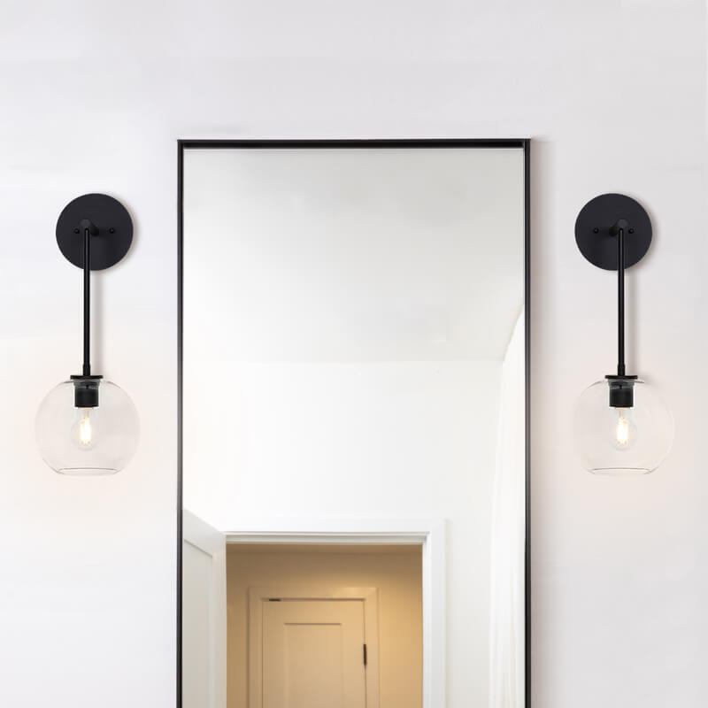 Modern 1 Light Globe Glass Bath Sconces Wall Light Black Single Vanity Light