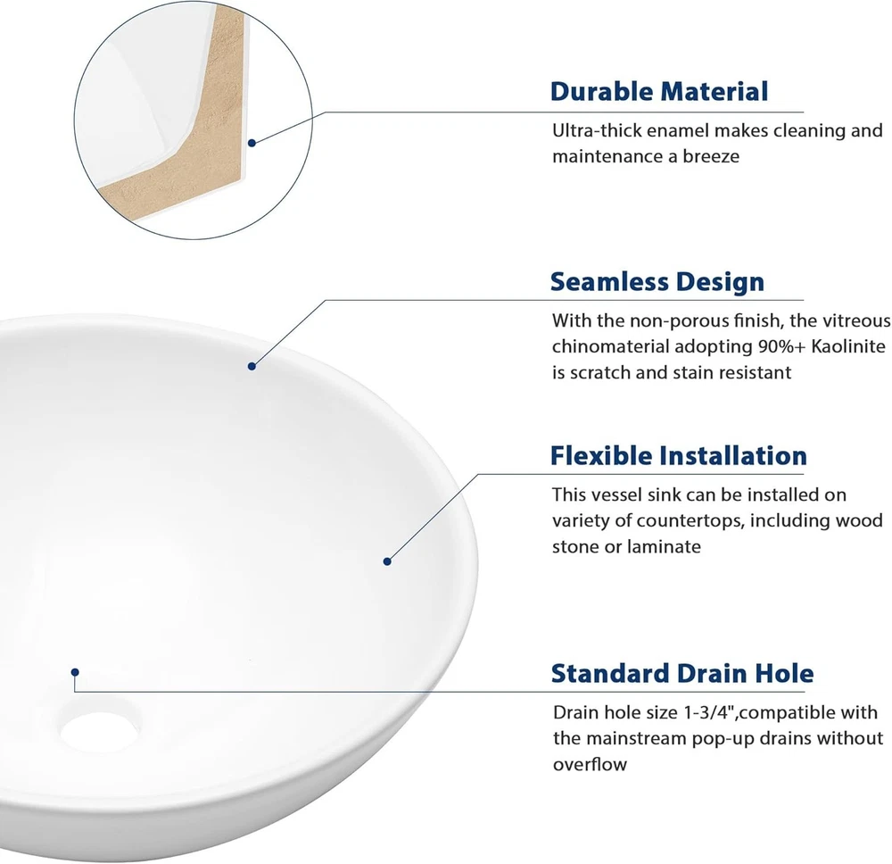 Modern 13" Ceramic Round Basin - Above Counter Vessel Sink with Glossy Finish ‹ › ‹ › ‹ › ‹ › ‹ › ‹ › ‹ › ‹ › ‹ › ‹ › ‹ › Modern 13" Ceramic Round Basin - Above Counter Vessel Sink with Glossy Finish Features: Round Vessel Sink designed with strong European concepts. Crafted using unique technical and manufacturing processes for a trendy and noble appearance. Made of premium quality ceramic, ensuring durability and longevity. Resistant to household temperature changes for reliable everyday use. Easy to maintain, keeping its glossy finish with minimal effort. Fits a 1-3/4" Center Drain Hole for straightforward installation. Specifications: Size: Length: 13 inch; Width: 13 inch; Height: 5 inch Why Choose Our Modern Vessel Sink? Elevate the style of your bathroom with our Modern Ceramic Round Basin. This exquisite vessel sink is not only a statement piece but also a functional addition. Its glossy finish captivates the eye while its robust ceramic construction withstands the test of time. With its unique design and easy installation process, you can transform your bathroom into a modern oasis with just one purchase. The blend of elegance and practicality makes this sink an essential choice for discerning homeowners. After-Sale Service: Buy with confidence! We prioritize your satisfaction and are here to assist with any questions or concerns you may have about the product. Your journey towards a luxurious bathroom experience starts here. Shipping Free & Fast Shipping - We offer free shipping to most of the USA with a normal delivery time of 3-7 days. However, due to the current situation, additional delivery time (up to 3 weeks) may be required for some items. Alternative Carriers - We may use alternative carriers (e.g. USPS, FedEx, UPS, etc.) to ensure your package arrives safely and on time. Due to the use of multiple carriers, we are unable to provide a tracking number automatically. Handling Time - Orders are processed and shipped within 1-2 business days of receiving cleared payment. Shipping Restrictions - Shipping to Alaska, Hawaii, Puerto Rico, Guam, and other US territories may incur shipping charges or delivery restrictions. Please contact us before ordering, or your order can be refunded/cancelled. State Restrictions - There may be restrictions based on your state of purchase. For example, certain items may not be shipped to California due to state regulations. Contact for Tracking Updates - If you require tracking updates or have any concerns about the delivery of your order, please feel free to contact us, and we will be happy to assist you. Return 30-Day Hassle-Free Returns - We want you to be completely satisfied with your purchase. If you are not, you can return the item within 30 days of receiving it for a full refund or exchange. Easy Return Process - To start a return, simply contact us and we will provide you with a prepaid return shipping label and detailed instructions. Restocking Fee - There are no restocking fees for returns. However, the buyer is responsible for return shipping costs if the return is not due to a seller's error. Refund Processing Time - Refunds will be processed within 5 business days of receiving the returned item in its original condition. Payment We accept all major credit cards, PayPal, and Apple Pay for your convenience. Your payment information is secure and encrypted to ensure a safe and seamless transaction. Please complete your payment within 3 days of purchase to avoid any delays in shipping. Feedback Your feedback is extremely important to us. We strive to provide the best products and customer service possible. If you are satisfied with your purchase, please take a moment to leave us a positive review. If you have any concerns or issues with your order, please contact us before leaving negative feedback. We are committed to resolving any problems and ensuring your satisfaction. Contact Us If you have any questions or concerns, please feel free to reach out to our customer support team. You can contact us through the eBay messaging system. We are available Monday to Friday, 9:00 am to 5:00 pm EST, and we will do our best to respond to your inquiry within 24 hours. Buy it now and enjoy a pleasant shopping experience! UPC: Not Set Unit Quantity: 9.03 Room: Any Room,Bathroom Mounting: Vessel,Above Counter Material: Ceramic Items Included: Not Set Features: Not Set Type: Vessel Brand: Unbranded Item Width: Vessel Sink Item Height: Vessel Sink Item Length: Vessel Sink Color: White Shape: Round Bowl Shape: Standard Inner Bowl Front-to-Back Length: Not Set Inner Bowl Side-to-Side Width: Not Set Style: Modern Bowl Height: Not Set Number of Faucet Holes: 1 Hole Country/Region of Manufacture: Not Set Finish: Glossy Model: Not Set Faucet Hole Spacing: Not Set Bowl Depth: 5-7 in MPN: Not Set Unit Type: lb Personalize: Not Set Assembly Required: Not Set